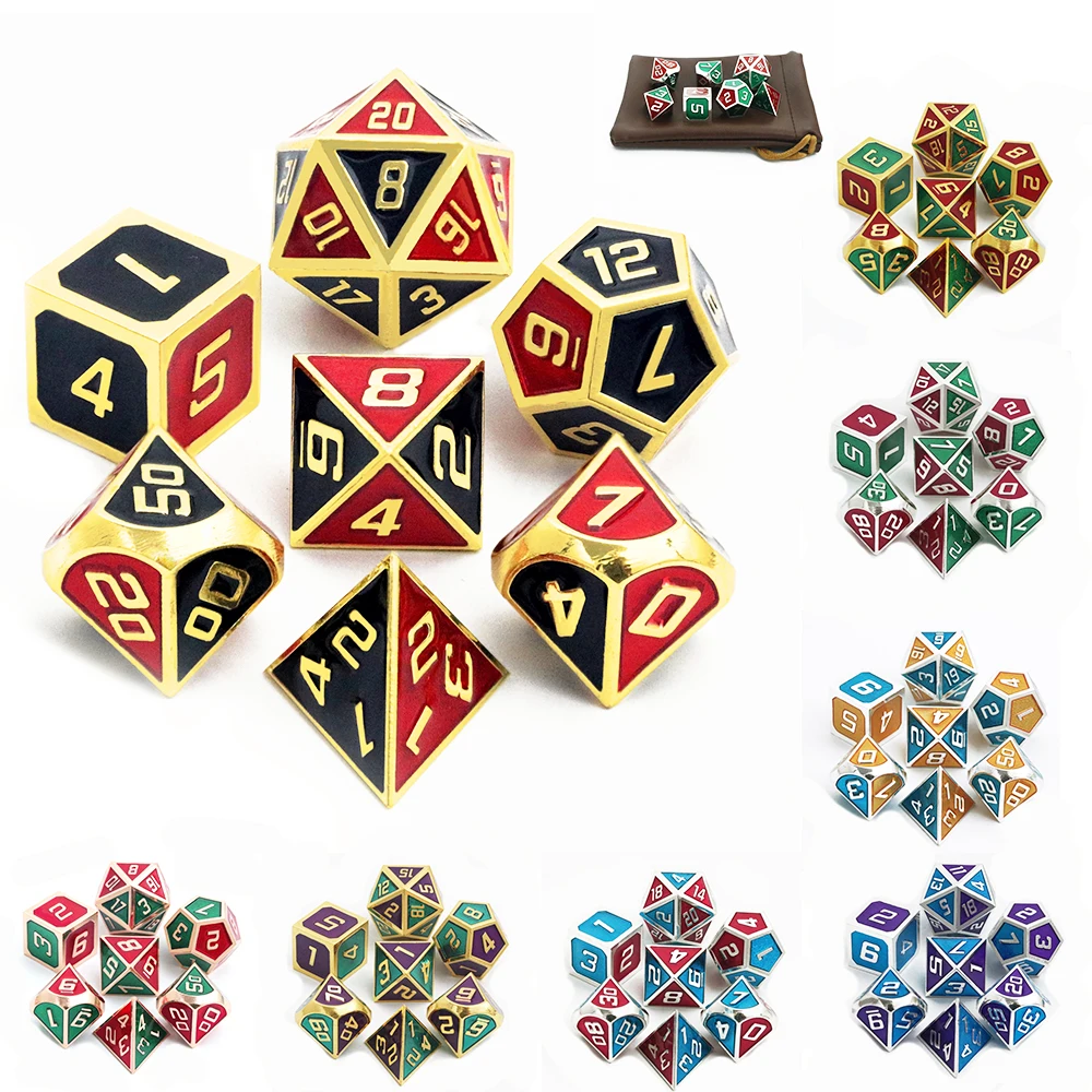 DND набор металлических игральных костей 7 шт. многогранный куб с кожаной сумкой для ролевых игр математические обучающие игры настольные игры