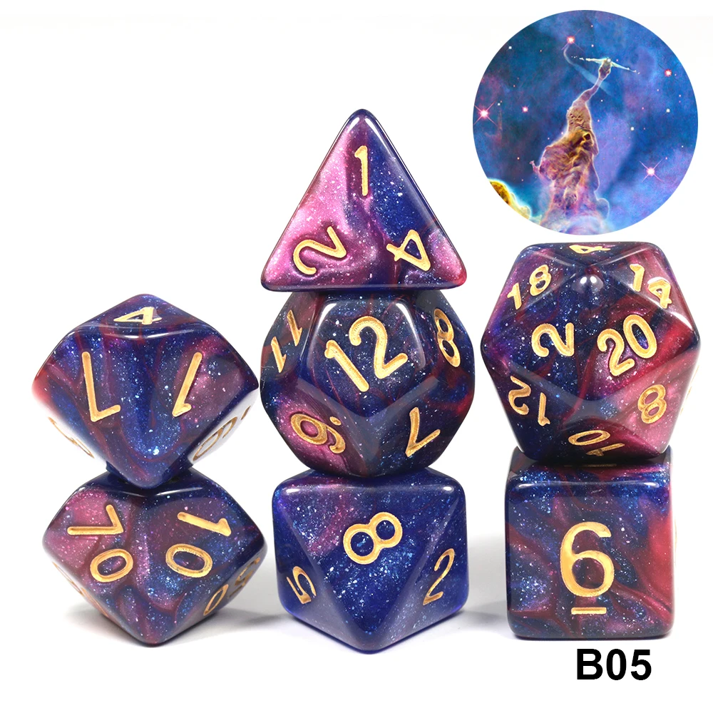 Glalaxy 7-Die космические смешанные многогранные игральные кости DND для настольных ролевых игр D4 D6 D8 D10 D % D12 D20