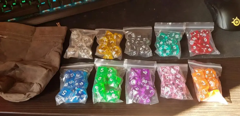 10 комплектов прозрачных игральных костей DnD D4 d6 d8 d10 d10 % d12 d20 для настольных игр красный синий желтый фиолетовый зеленый высокое качество