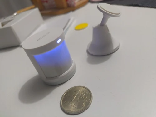 Датчик работает, и он довольно маленький. В комплекте есть запасной двусторонний скотч для крепления. Батарейка запрятана где-то внутри и из коробки сразу всё коннектится и работает. Для русскоязычного сегмента важное уточнение: не через любой хаб будет работать с Алисой: работает (в теории) только через навык "Aqara" (не xiaomi) и только через акаровский шлюз, купленный в России. Т.е. если вам важна не только автоматизация через сценарии в mi home, но и кричать что-то Алисе про эти датчики, то сразу выбирайте хаб внимательнее. У меня mi gateway 3 и алиса не видит ничего из подключённого к нему (реле, датчики температуры, движения, кнопку)