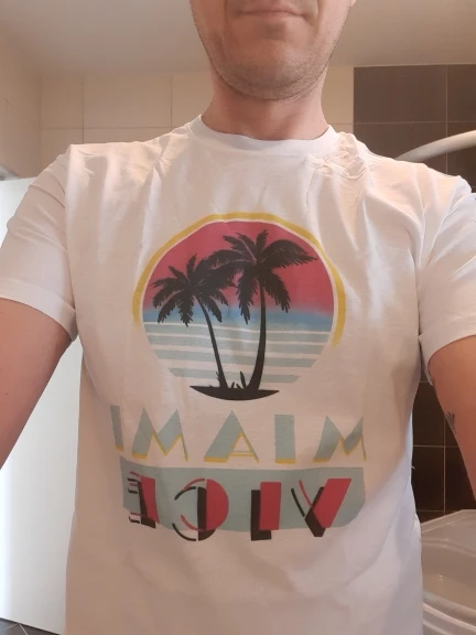 Мне нужно 10 дней, чтобы вернуться домой. Качество выглядит довольно хорошо, Футболка тонкая и дышащая, швы выглядят хорошо. Рисунок напечатан на экране, а не наклейкой, поэтому он должен хорошо держать первую стирку. Я измерил 1,87 и вес 82 кг, и XL выглядит хорошо, мешковатые, не обтягивающие.