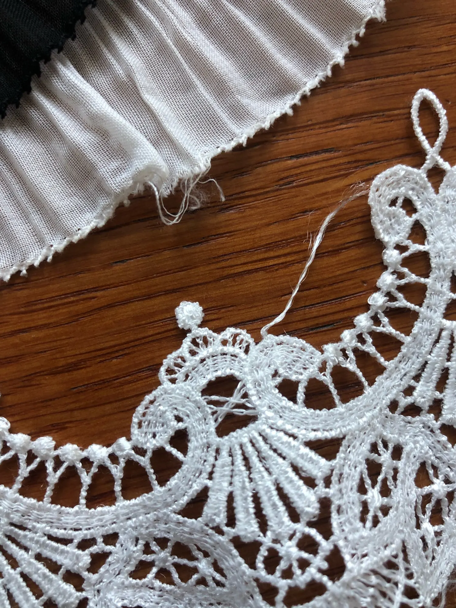 Хорошее кружево. Не рассыпается, нитки не лезут. Единственное есть заводской запах.