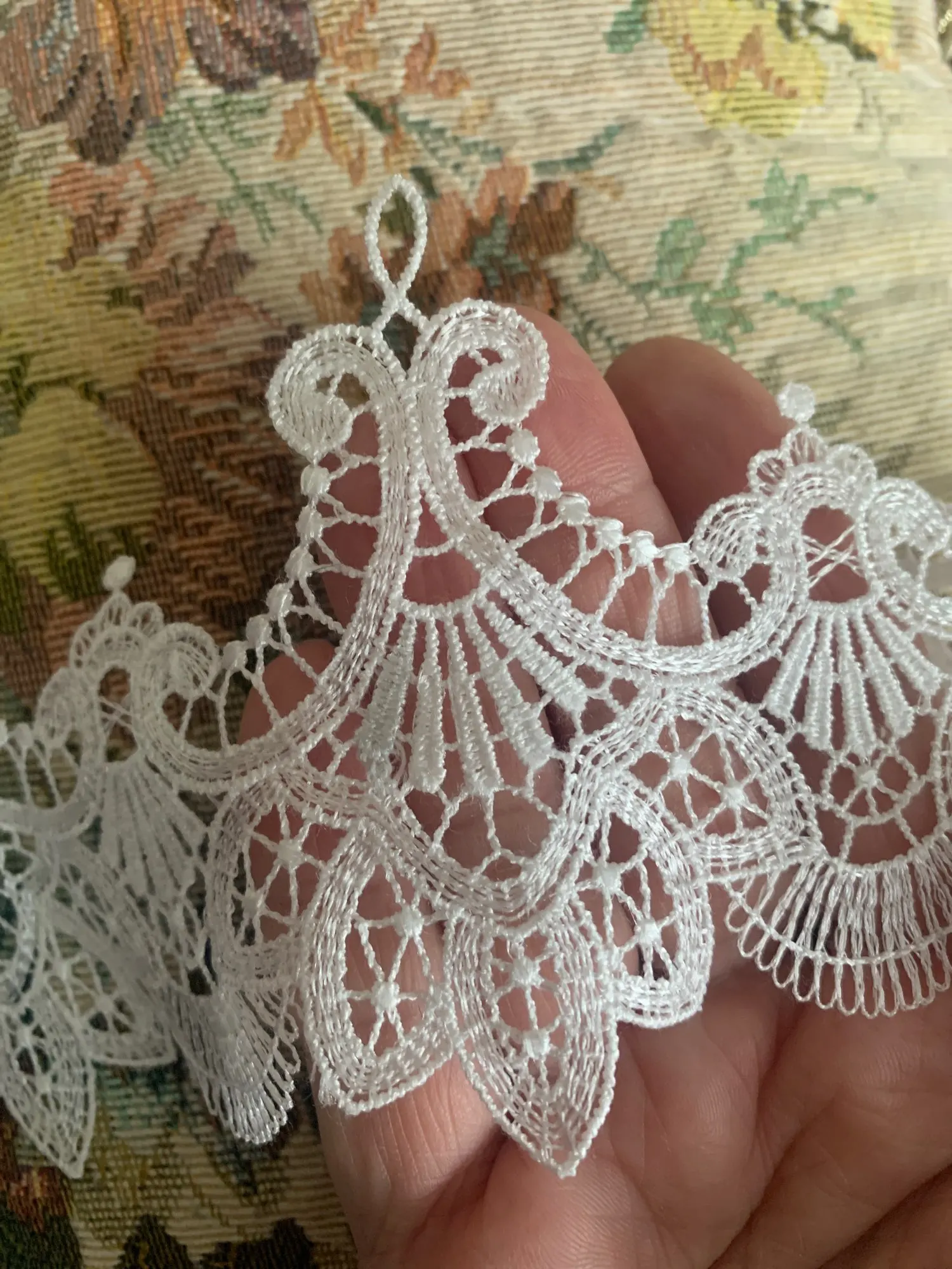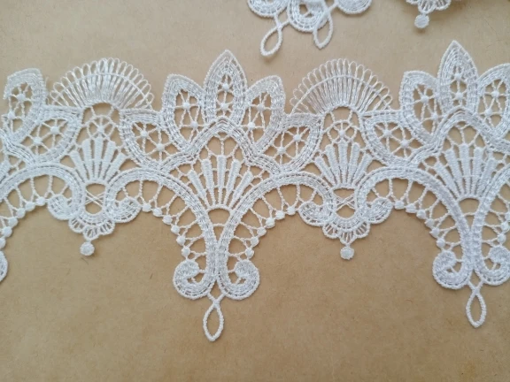 Очень красивое кружево. Тонкое и изящное. Взяла на пробу 1 ярд, буду заказывать ещё.