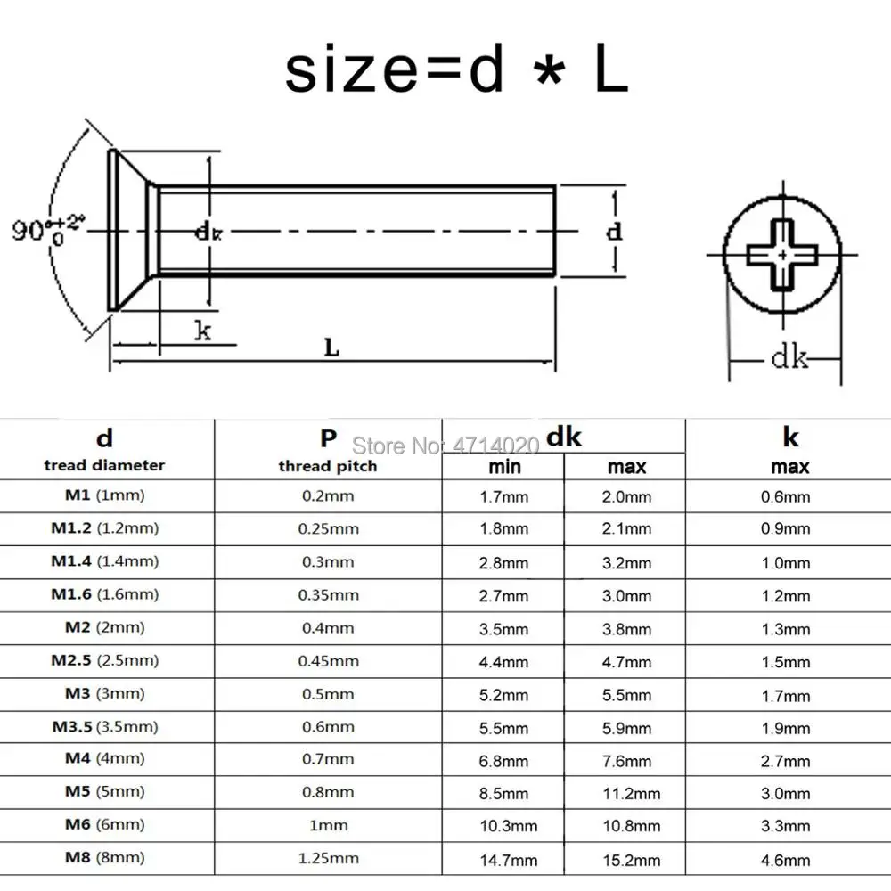 50x M1.2 M1.4 M1.6 M2 M2.5 M3 M3.5 M4 Mini Micro маленький черный 304 Крест Из Нержавеющей Стали Phillips с плоской потайной головкой болт с головкой