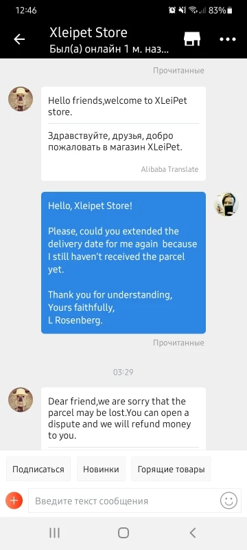 Посылка так и не пришла, но ставлю пять звёзд, потому что, во-первых, как мне кажется, в том, что товар так и не был доставлен, виновата наша великая и ужасная Почта России, а во-вторых, продавец отвечал очень быстро, вежливо и по делу, несколько раз по моей просьбе продлевал защиту заказа, а потом сам предложил открыть спор и вернуть деньги. В общем, если вы в России, то, скорее всего, тут или выбирать доставку подороже, но с возможностью полного отслеживания посылки, или... или переехать в страну, где почта (и не только) работает получше.