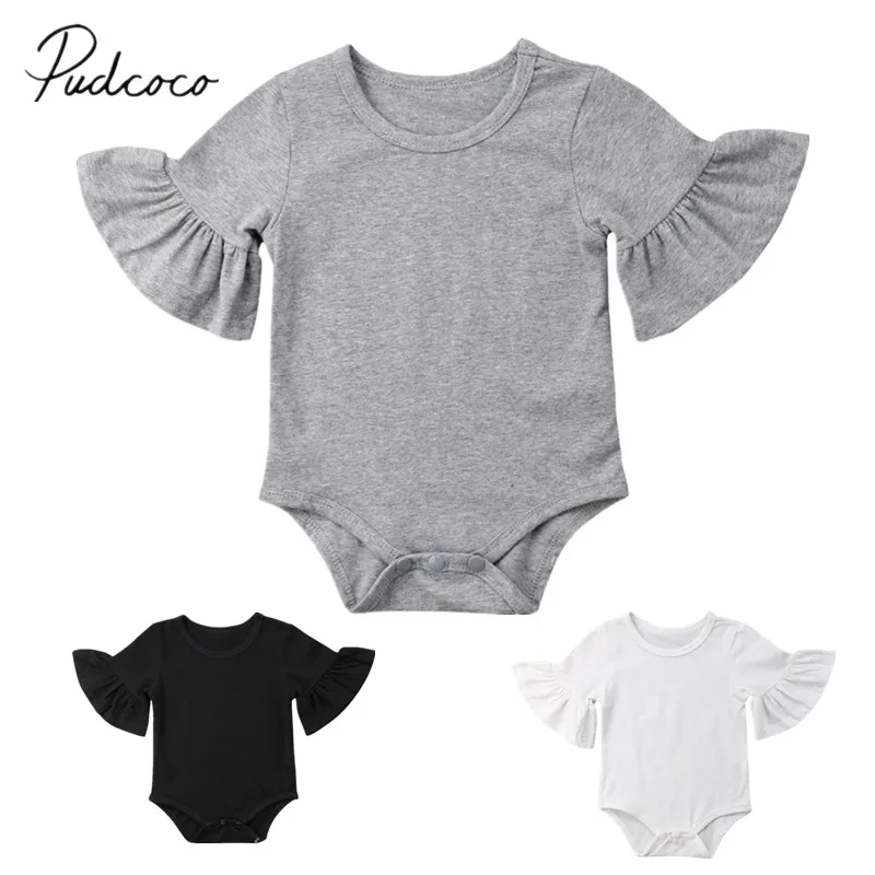 Новинка 2019, Брендовые однотонные боди для новорожденных девочек, одежда, комбинезон с расклешенными рукавами, костюм от солнца, повседневная одежда, хлопковые комбинезоны