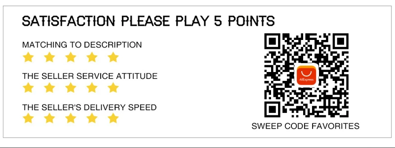 5. Пожалуйста, свяжитесь с нами, прежде чем оставить нейтральный (3 звезды) или отрицательный (1-2 звезды) отзывы. Мы гарантируем, что мы будем 100% slove любую проблему для вас.