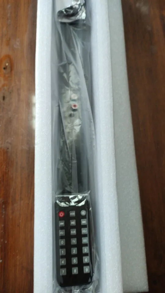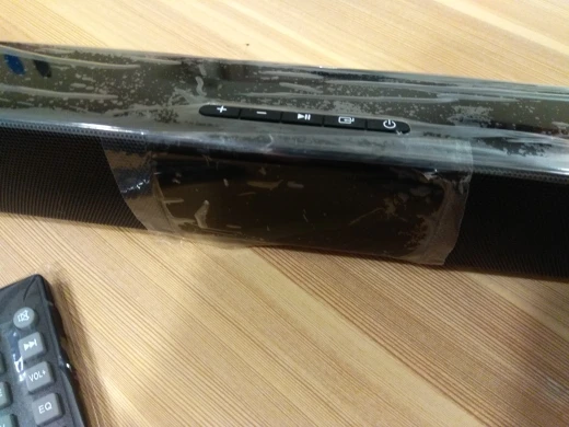 Брал для телевизора 23" - у того звук просто никакой. Доставили очень быстро, за 4 дня. За эту цену очень хороший саундбар, звук внятный. По размеру идеально подходит для телевизоров 23", у меня питается от USB порта ТВ. Из замечаний - нет возможности штатного крепления к стене, я клеил на двухсторонний скотч. И еще, при нажатии кнопки "список каналов" на ДУ для ТВ происходит смена режима звука на колонке - видимо ИК-код совпал.