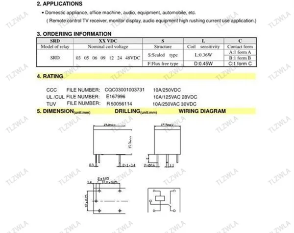 Бесплатная доставка, 5 шт., реле , 3V 5V 6V 9V 10A 250VAC 5PIN T73