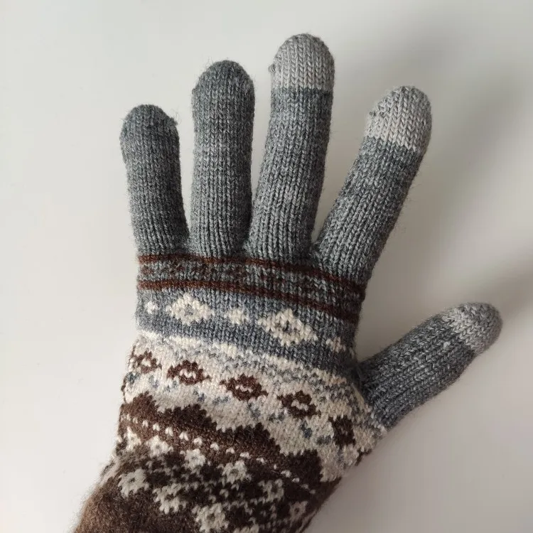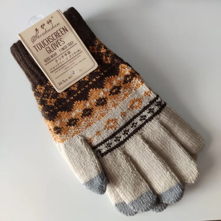 Зимние мужскиеженские теплые жаккардовые эластичные вязаные перчатки, женские с волшебным принтом, шерстяные перчатки с пальцами, утепленные варежки B43