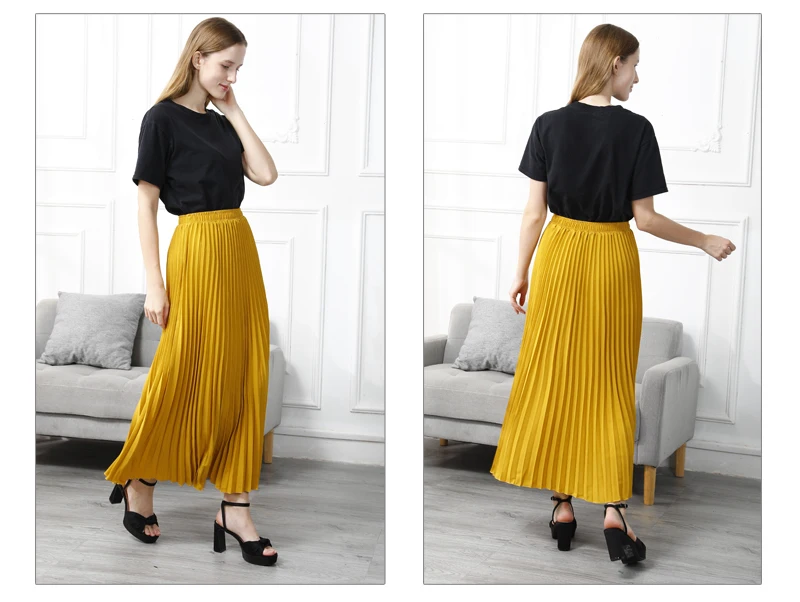 Юбки женские плиссированные, с высокой талией, 10 цветов, Весна Длинная юбка миди, SK295, 2021