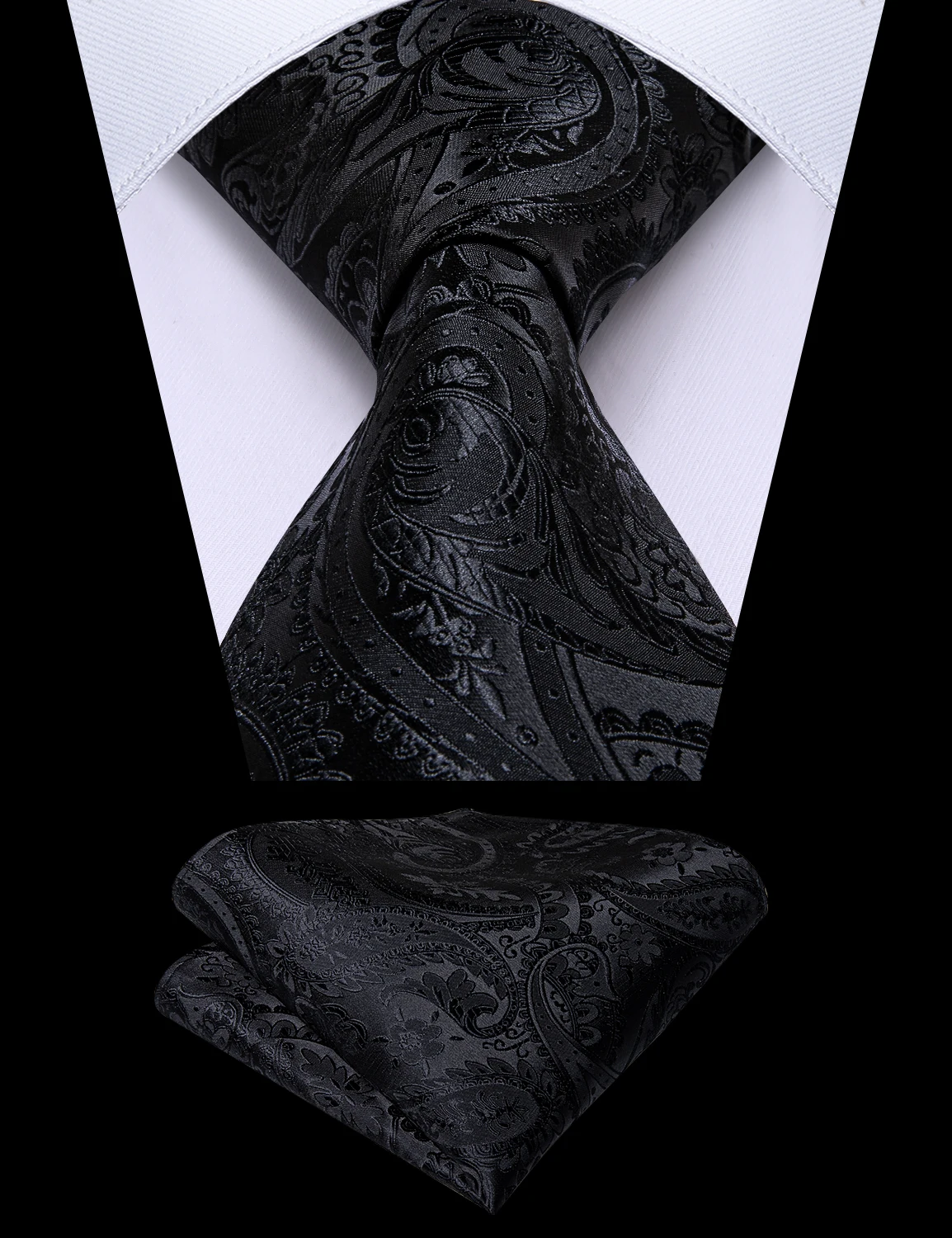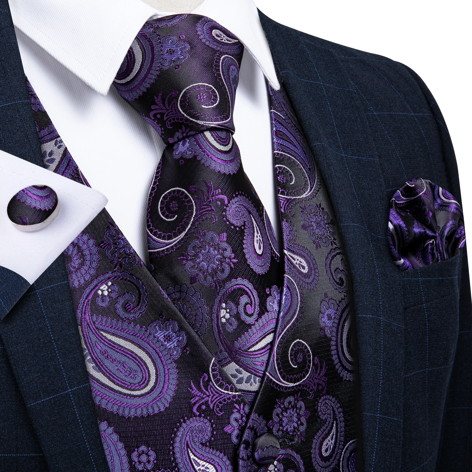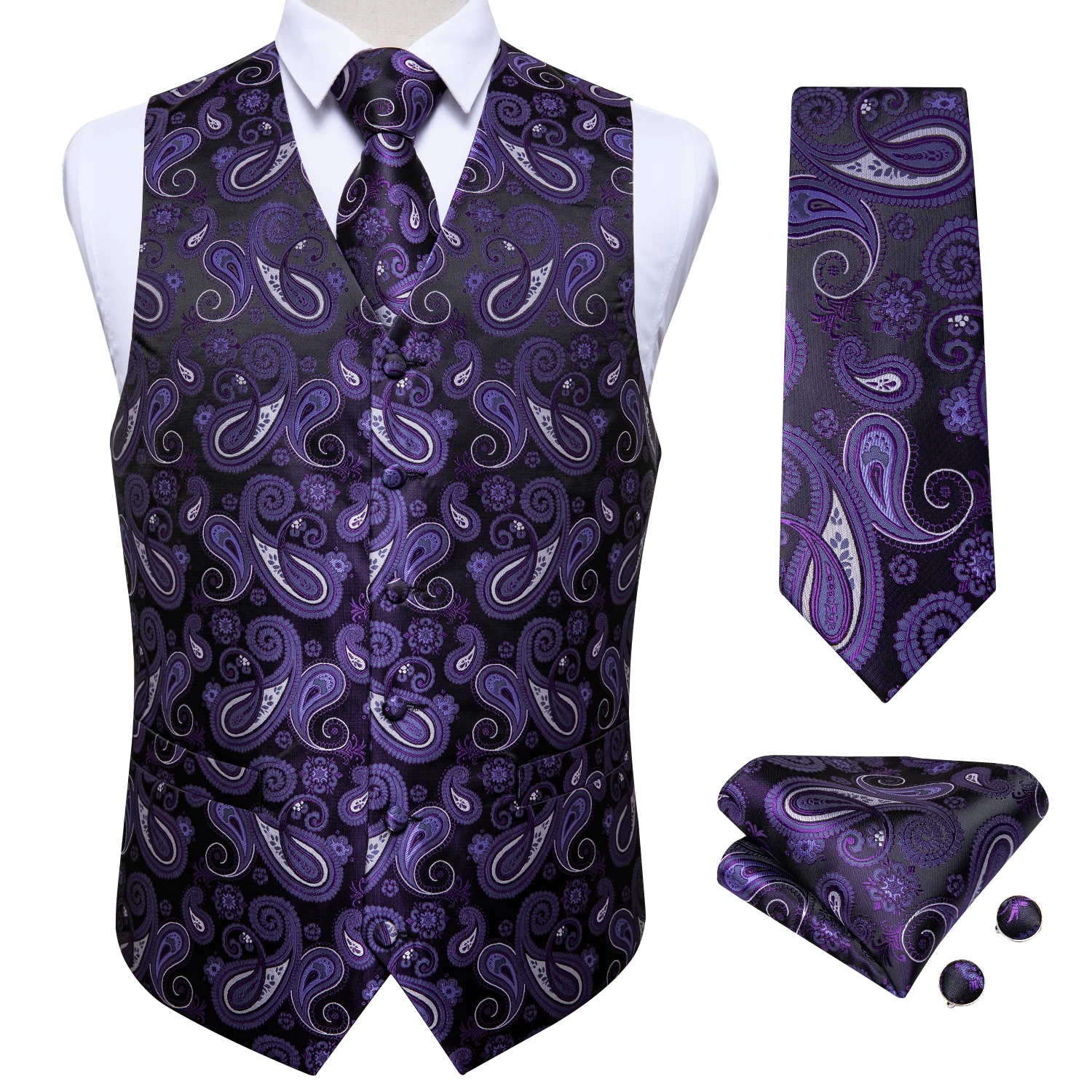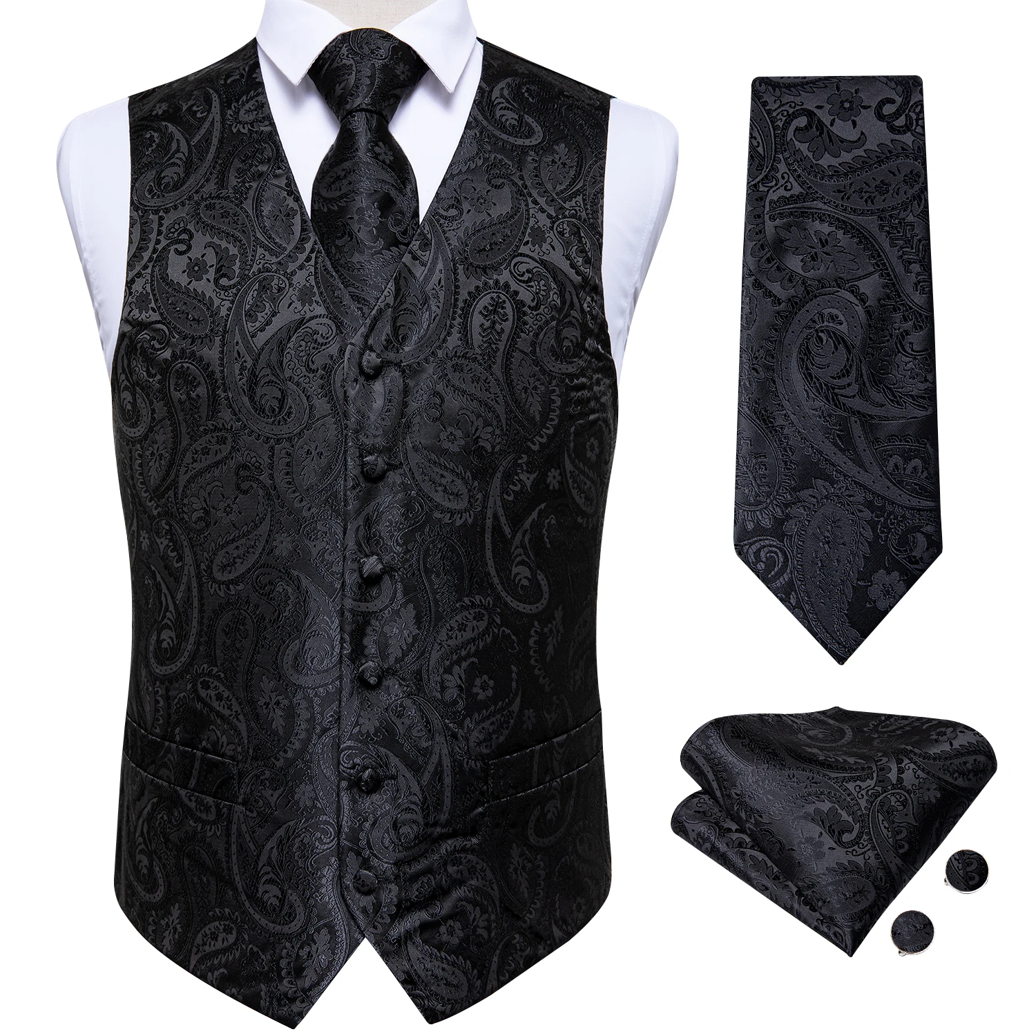 DiBanGu, черный Пейсли, модный Свадебный Мужской жилет из 100% шелка, жилет, галстуки, карман, квадратные запонки, набор для костюма, смокинг, MJTZ-109