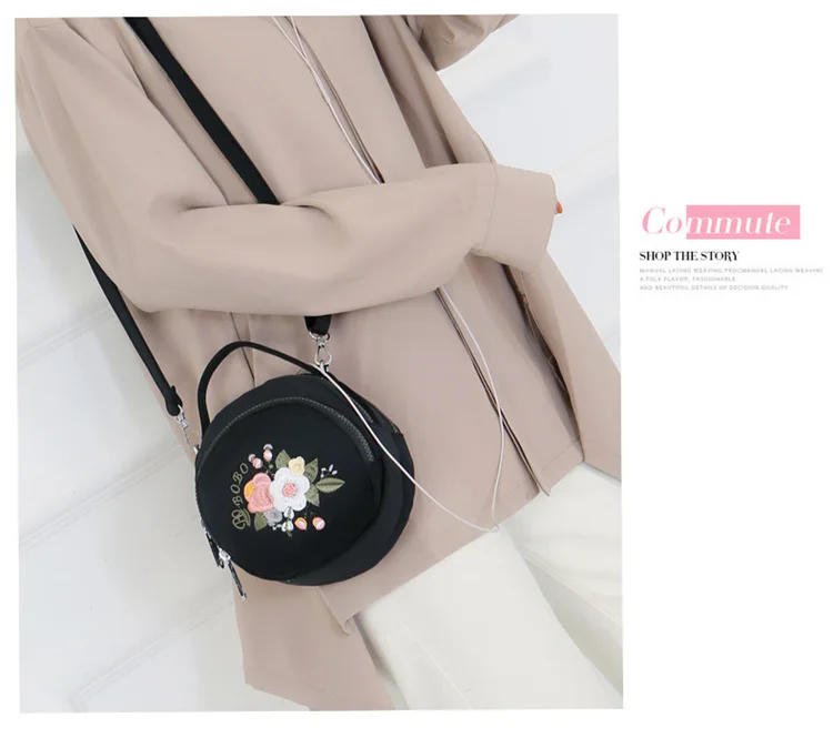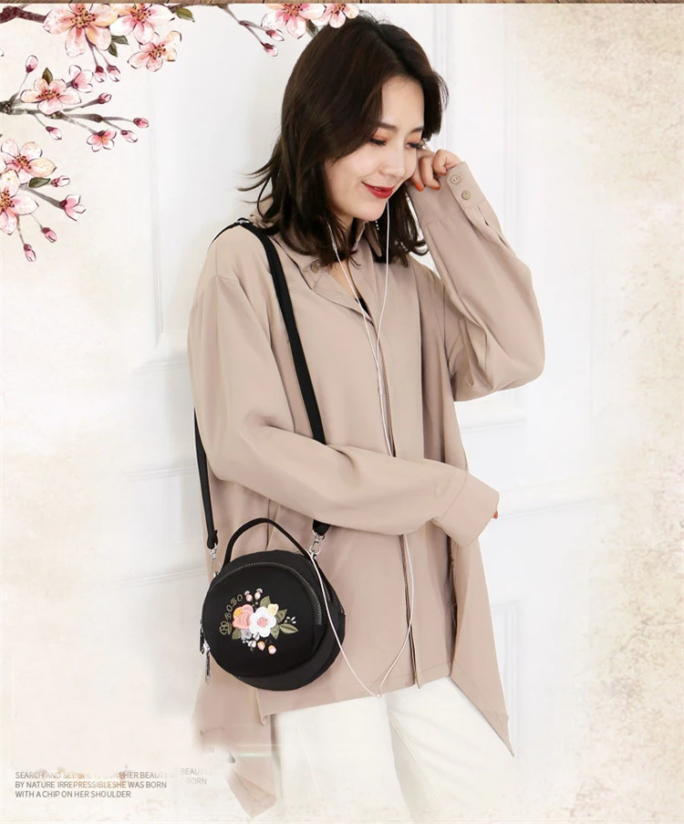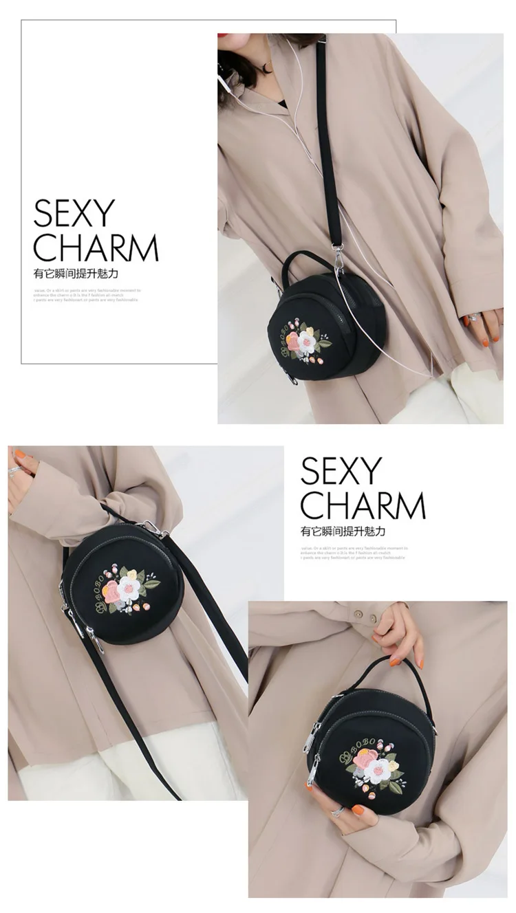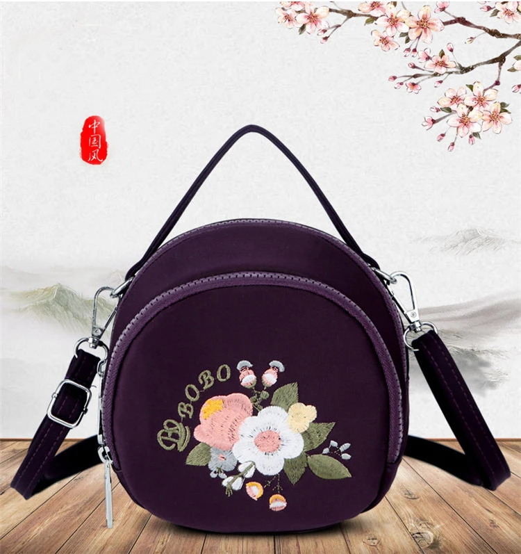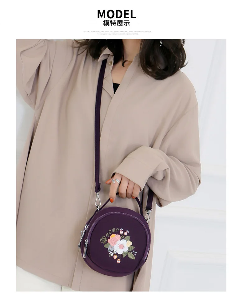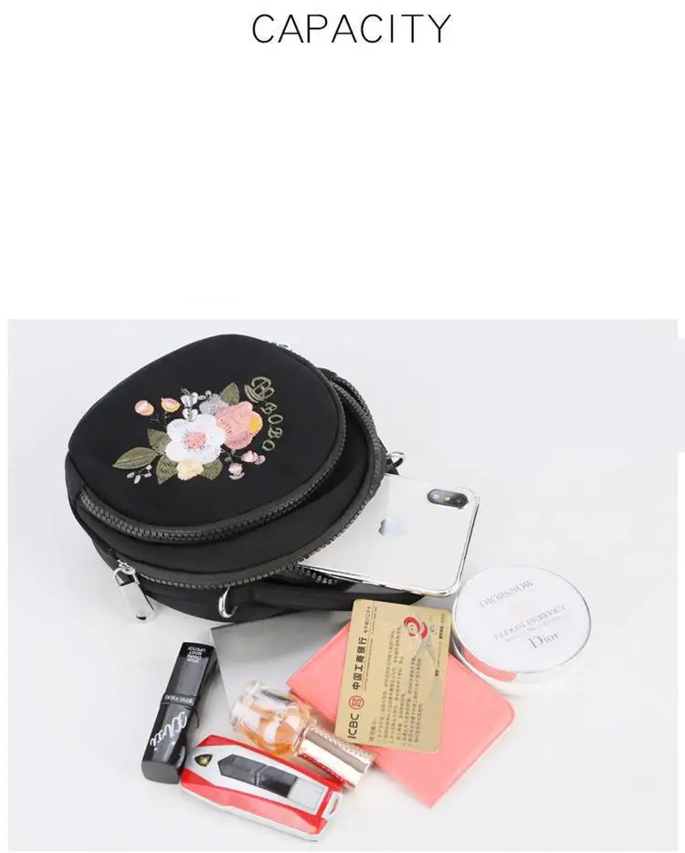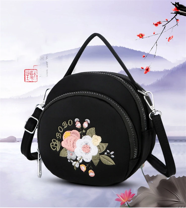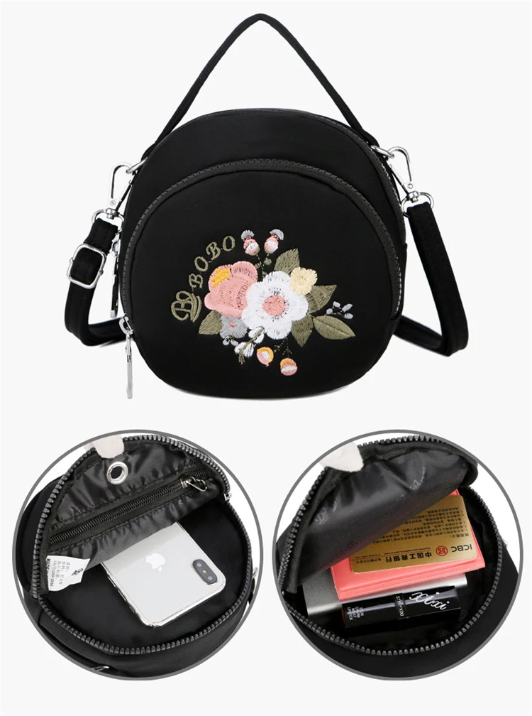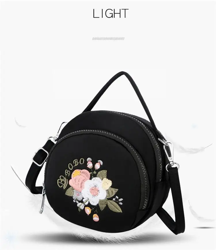 Женская сумка-Кроссбоди из нейлона, на молнии, с вышивкой