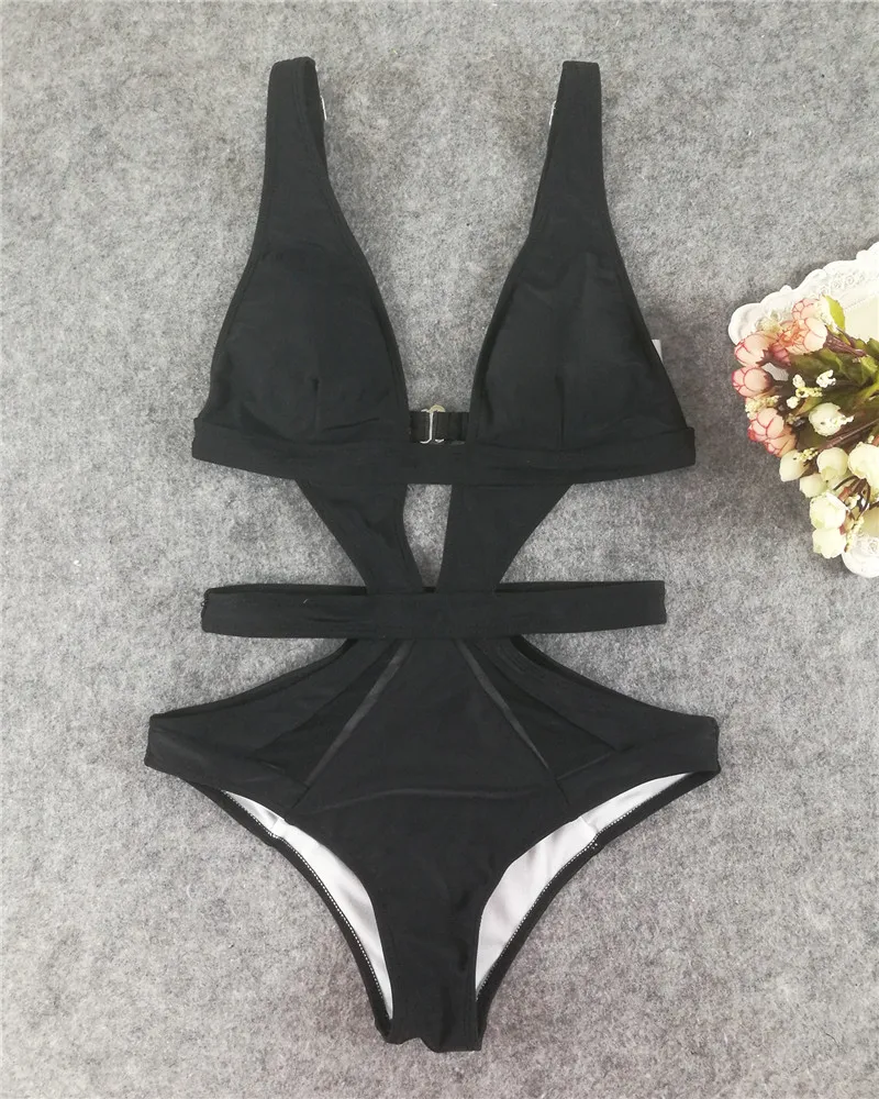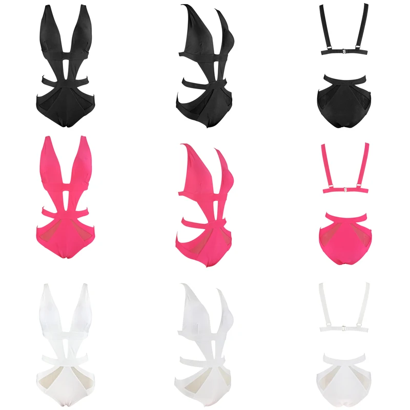 Черный слитный купальник, сексуальный сетчатый купальник, женский купальный костюм с вырезом и V-образным вырезом, монокини, белые, розовые купальники, трикини