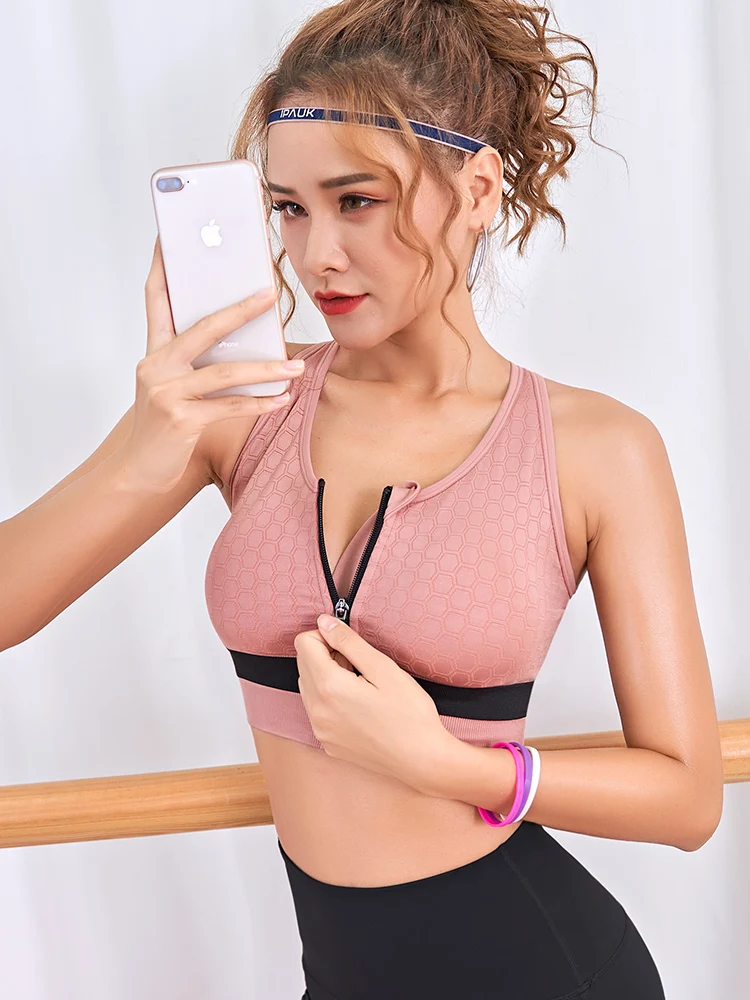 Женский спортивный бюстгальтер, ударопрочный, на молнии спереди, для фитнеса, спортзала, бега, регулируемые топы, майка для йоги, бесшовный жилет пуш-ап, топы для фитнеса