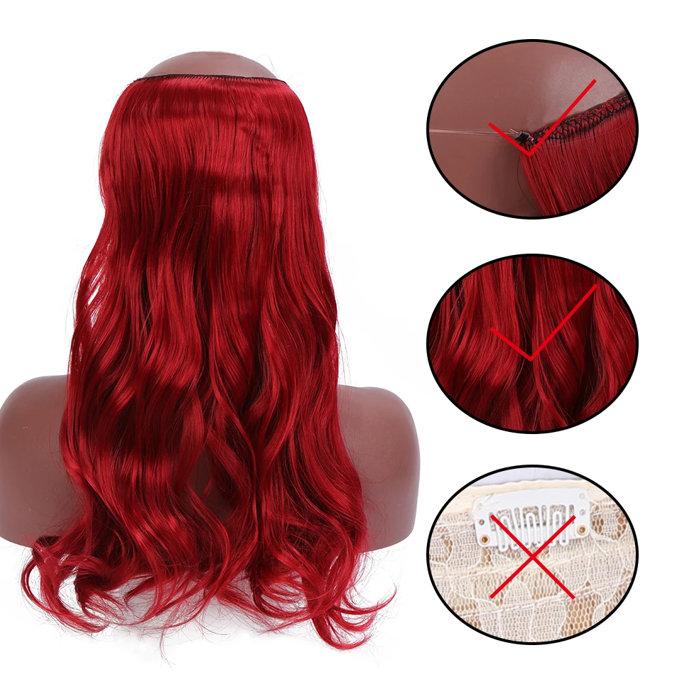 BUQI без зажима волна Наращивание волос Halo синтетический натуральный черный наращивания блонд, коричневый, Одна деталь накладные парики рыба линия поддельные волосы кусок
