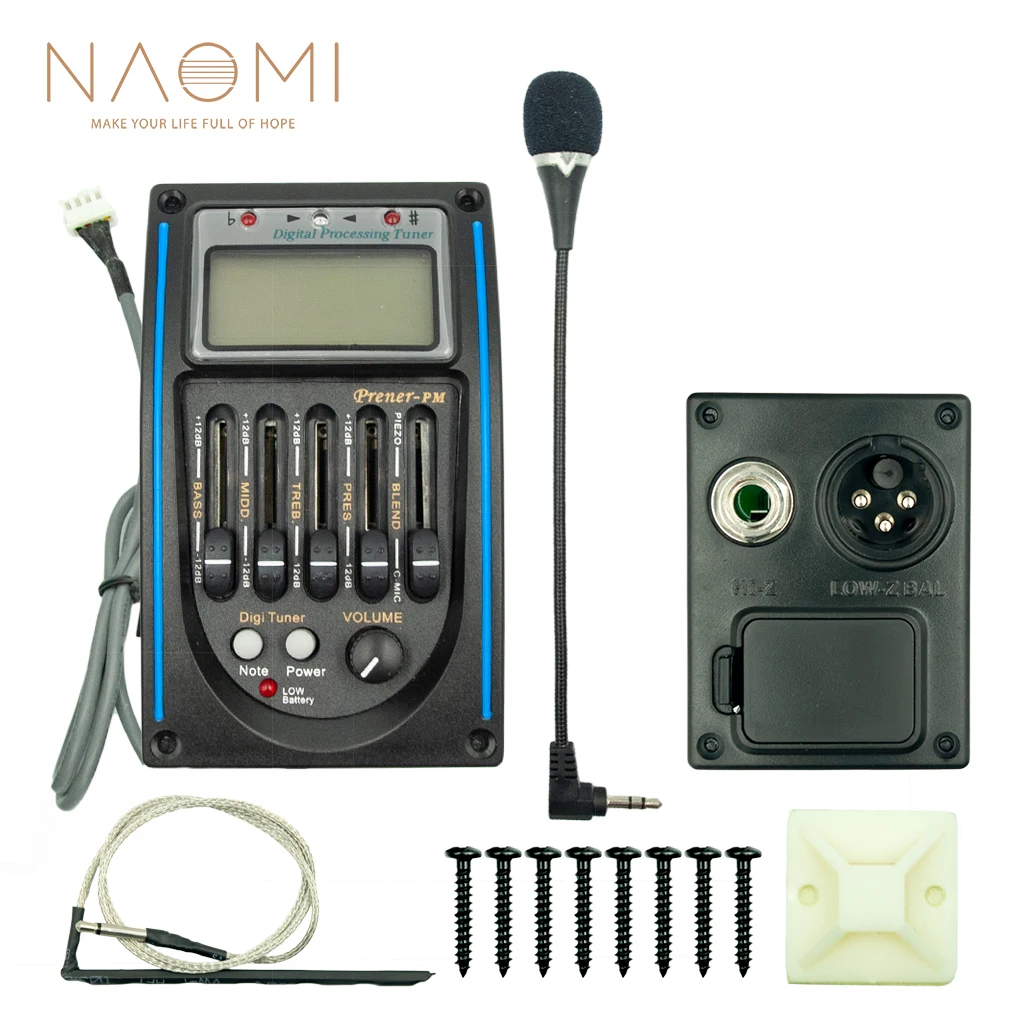 NAOMI 5-полосный Акустическая гитара EQ предупредительный пренер-PM 5-полосный эквалайзер звукосниматель тюнер ЖК с микрофоном