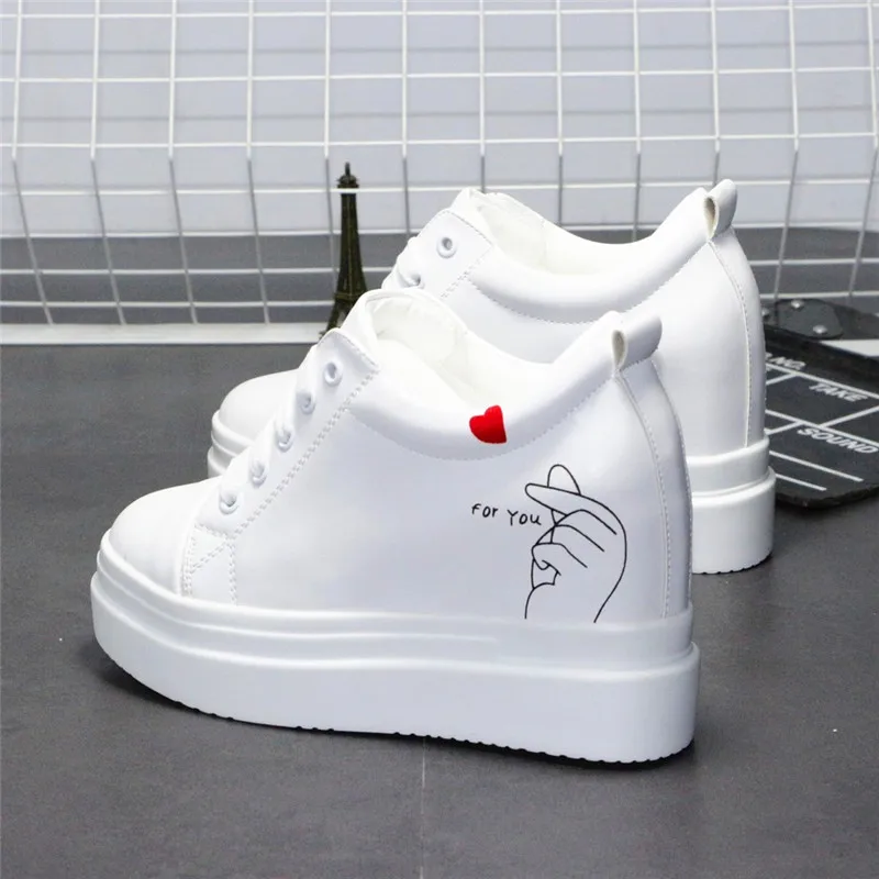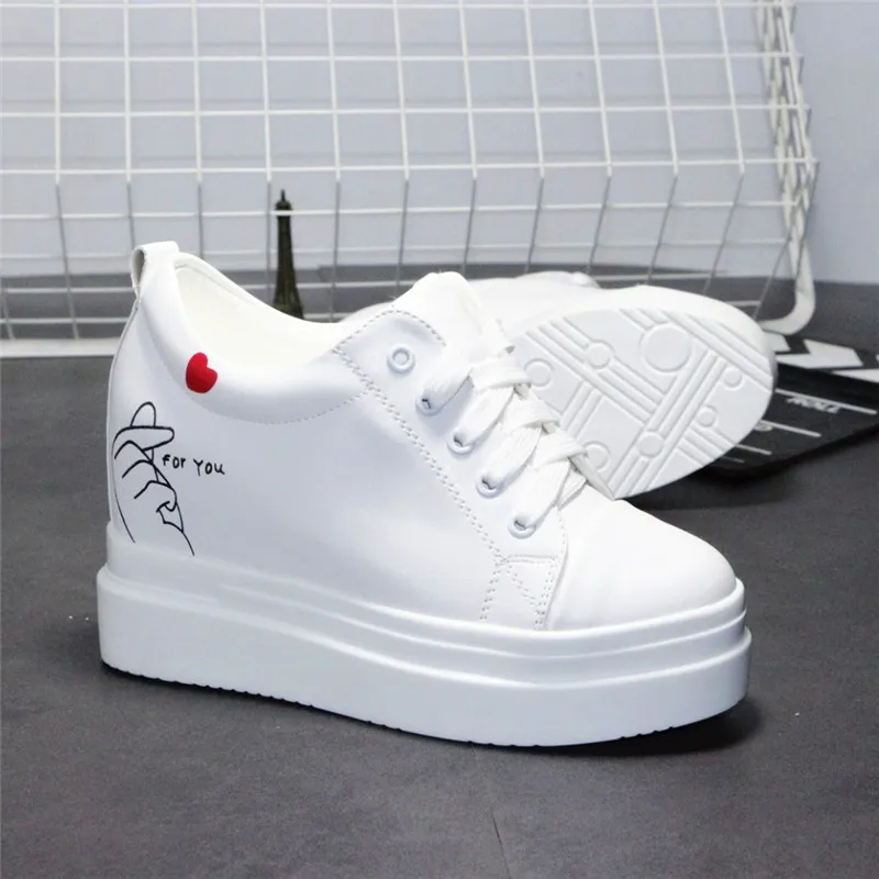 Женские кроссовки на платформе, белые дышащие кроссовки на танкетке 8 см, повседневная обувь для увеличения роста, осень 2021