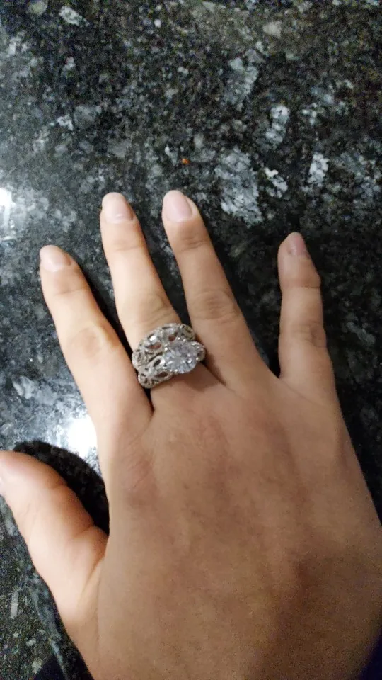Шикарное кольцо,заказывала маме,но и на мне тоже смотрится шикарно,второй раз заказываю у этого продавца,всем рекомендую. Фото со вспышкой,чтобы показать какое кольцо шикарное,в живую так же блестит,даже на белое золото похоже. Вообщем советую всем