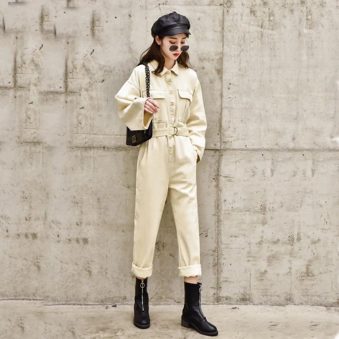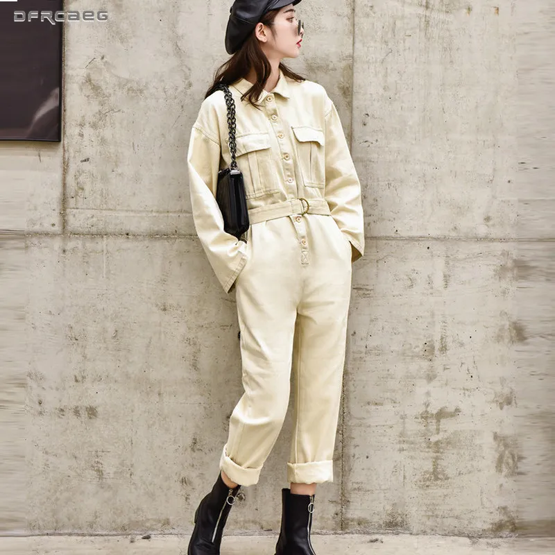 Женский джинсовый комбинезон в стиле ретро, голубой джинсовый комбинезон с высокой талией, облегающий свободный джинсовый комбинезон в стиле BF, осень 2019