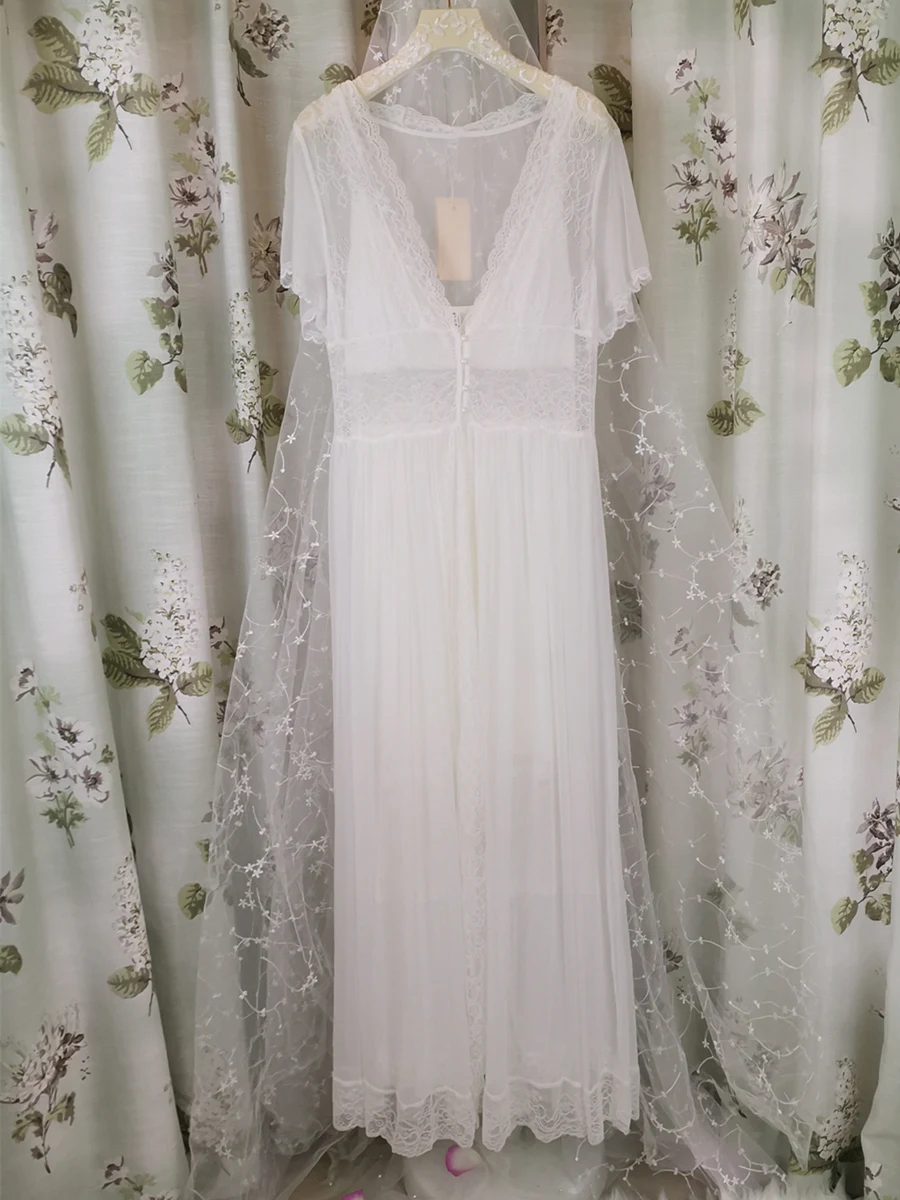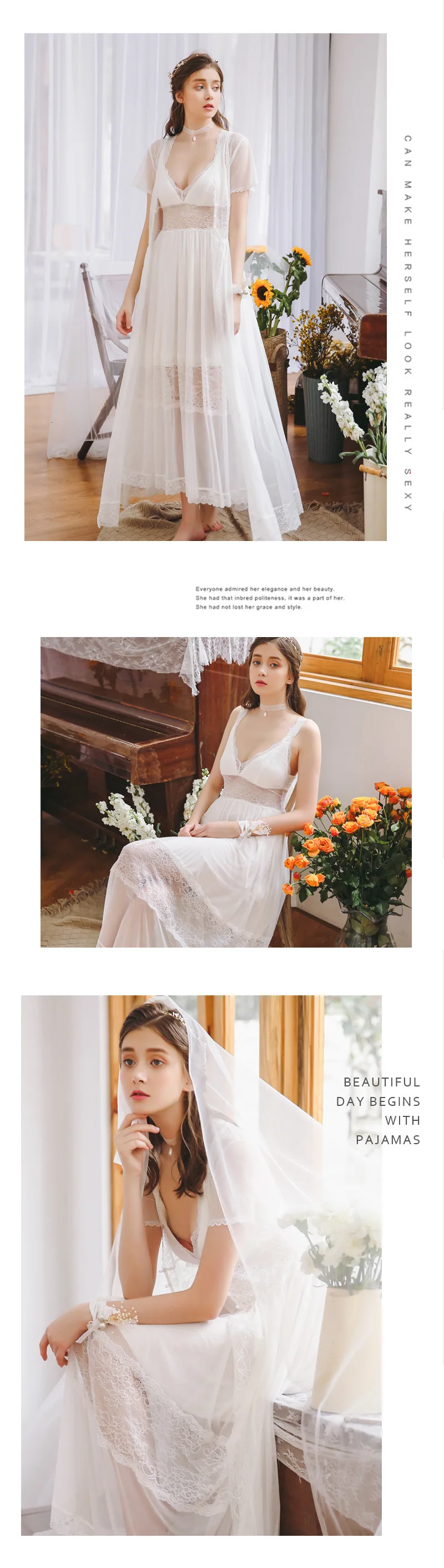 Милый сексуальный кружевной пеньюар, женский халат принцессы, мягкий костюм, комплект из 2 предметов, халат невесты, длинное платье для сна