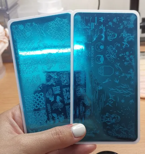 Очень интересная пластина для печати. Заказывала только ради рыбок. Мой мастер не очень любит с ними работать, но слайдеры с рыбками я найти нигде не могла, поэтому решила купить платину. В итоге путём проб и ошибок, всё получилось. Я довольна. Для тех кто любит работать с ними очень рекомендую.