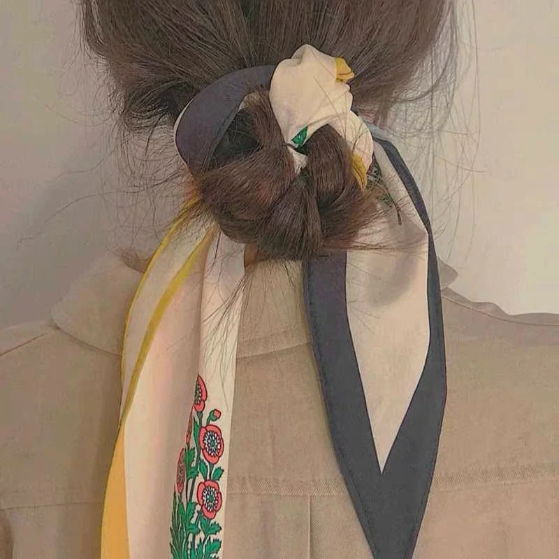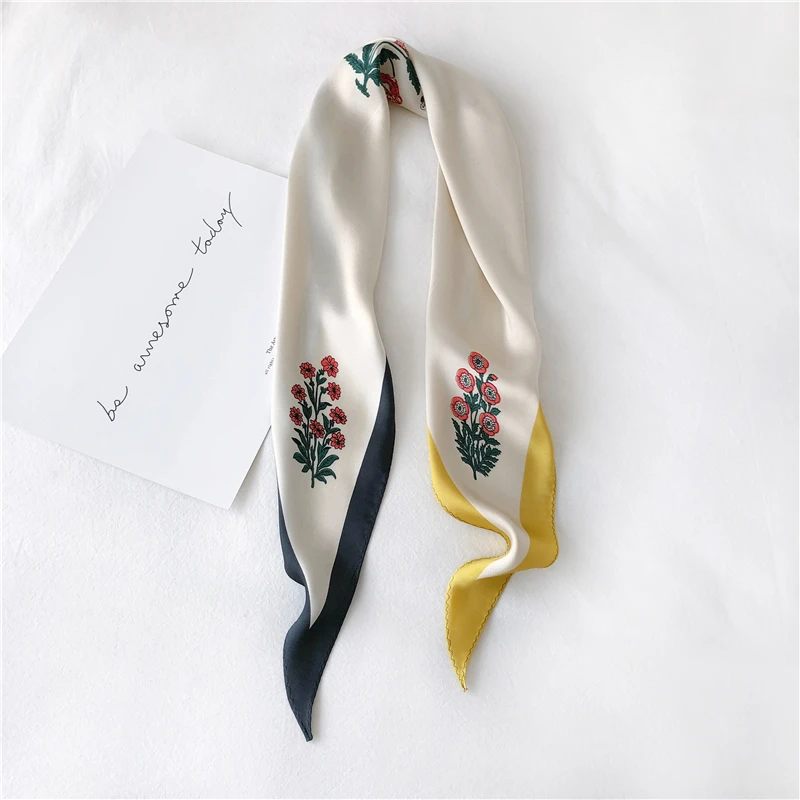 Женский шифоновый шарф Luna Dolphin, весенний винтажный шарф с цветочным принтом, желтый, серый, 110x35 см