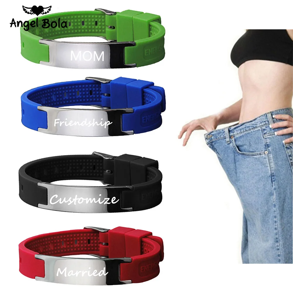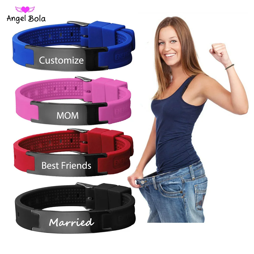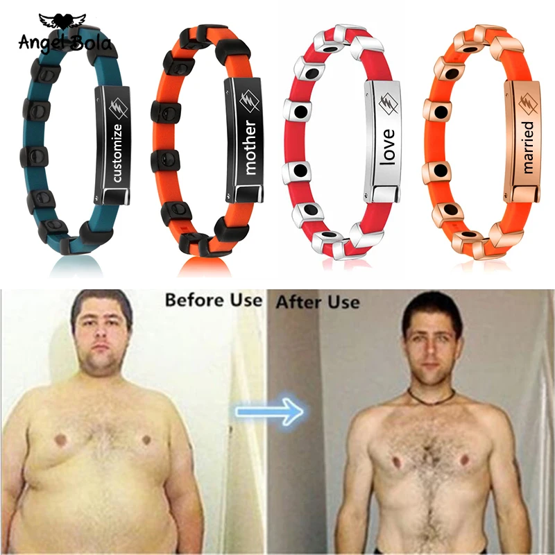Бесплатная гравировка, лазерное имя, дата, настраиваемый подарок, магнитный, для здоровья, для потери веса, браслеты, цветной тон, силикон, мужские ID браслеты