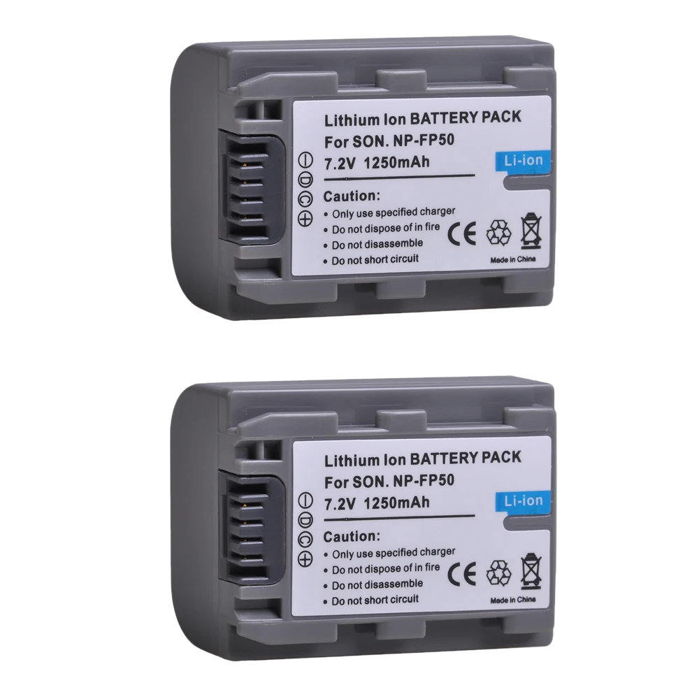 2 шт. 1250 мАч NP-FP50 NP FP50 батарея для Sony NP-FP30 NP-FP60 NP-...