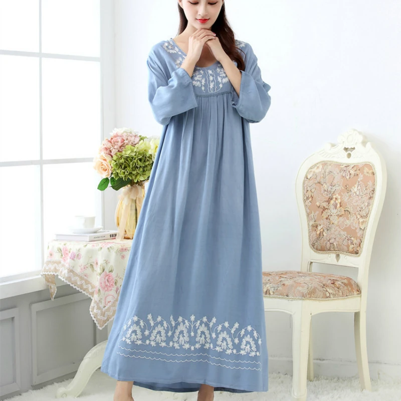 Женская ночная рубашка, длинная хлопковая Ночная рубашка свободного покроя, на весну и осень, удобная ночная рубашка