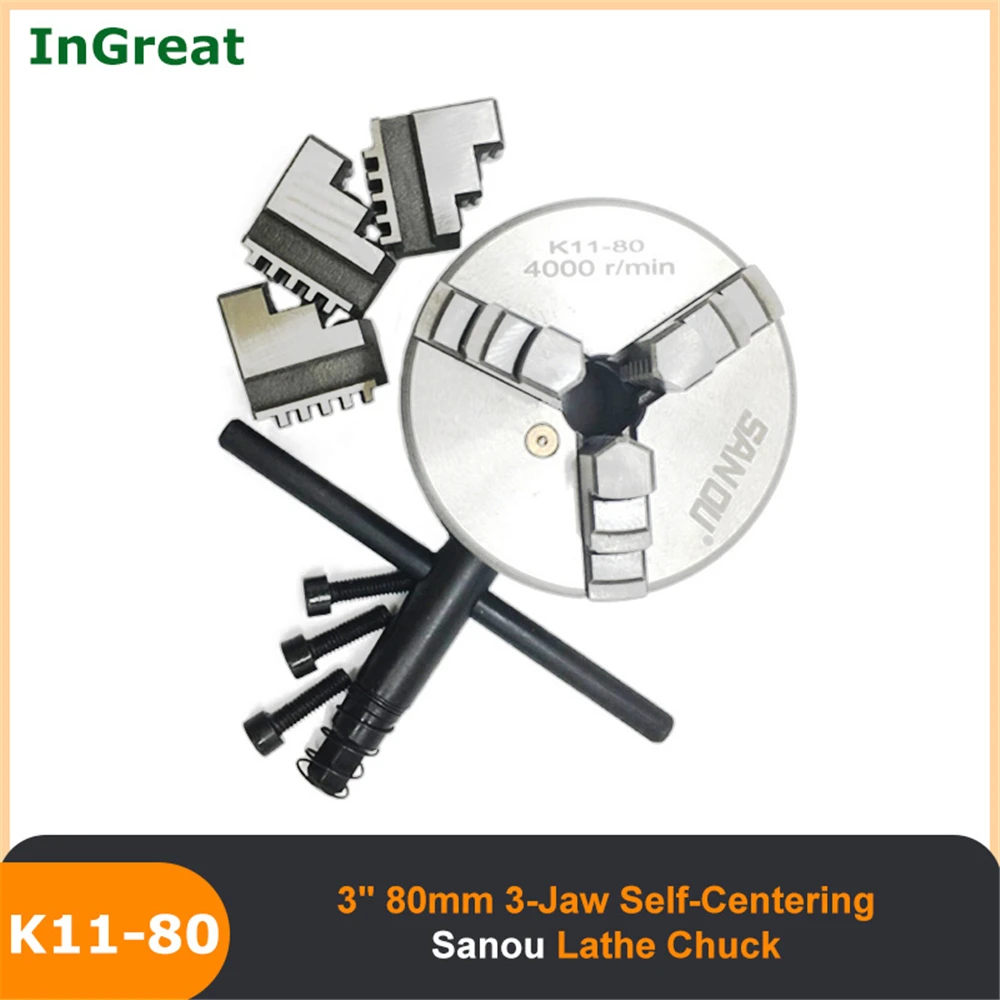 Патрон токарный SANOU K11-80, 3 дюйма, 80 мм, 3 дюйма, Самоцентрирующийся