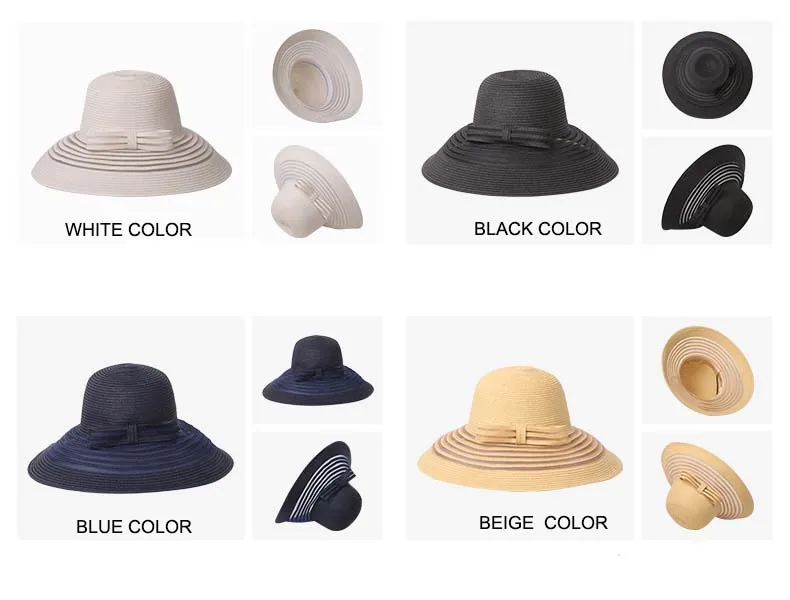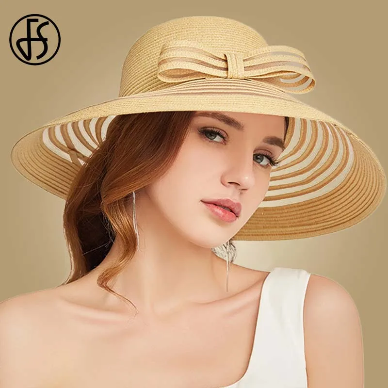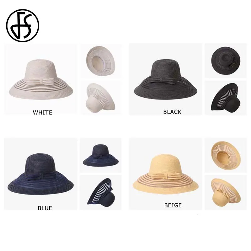 Женская соломенная шляпа FS 2020 с большим бантом, белая, черная, с широкими полями, гнущиеся, пляжные шляпы для женщин, женские весенне-летние козырьки, солнцезащитные кепки100% новый и высокое качество
