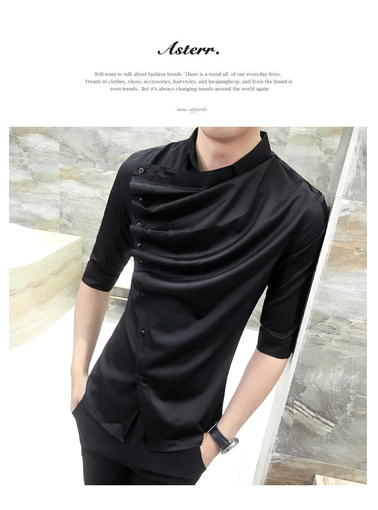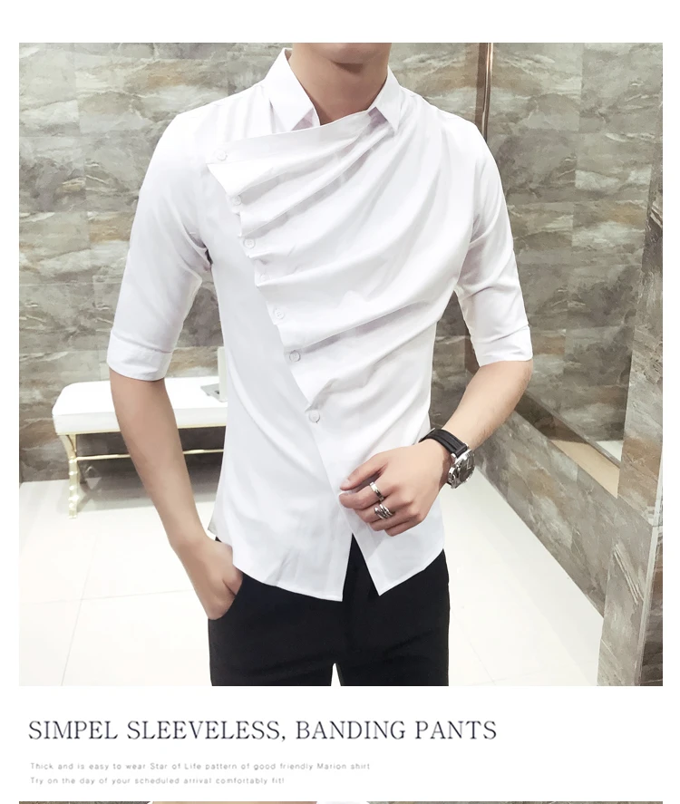 Мужская Готическая рубашка, черно-белая рубашка с воротником и оборками, летняя модная одежда для выпускного вечера, клуба, 2019