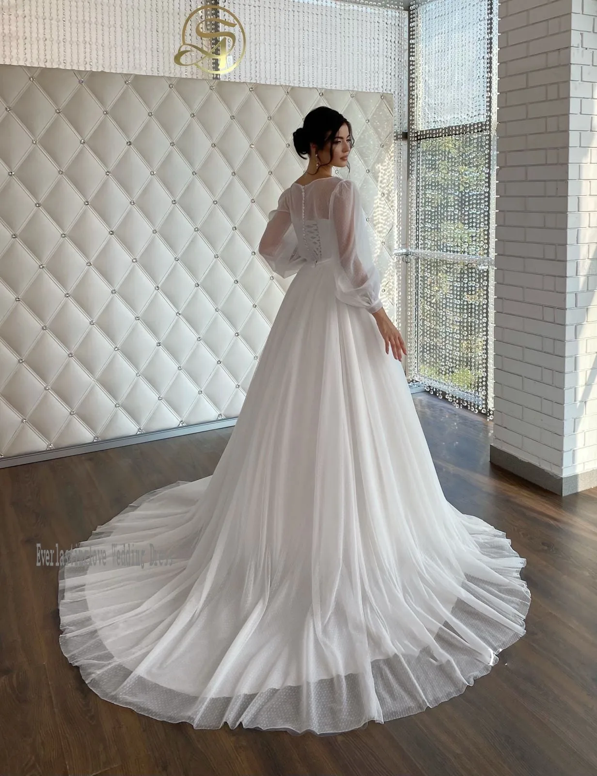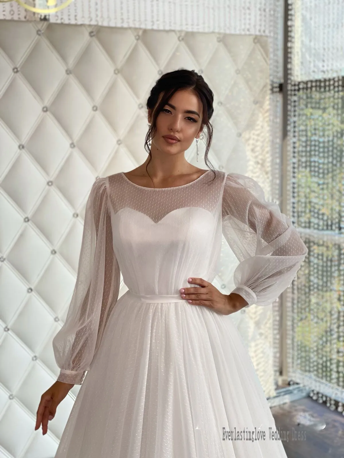Современное новое простое ТРАПЕЦИЕВИДНОЕ свадебное платье с длинным рукавом, прозрачное свадебное платье с глубоким круглым вырезом, свадебное платье, 2022