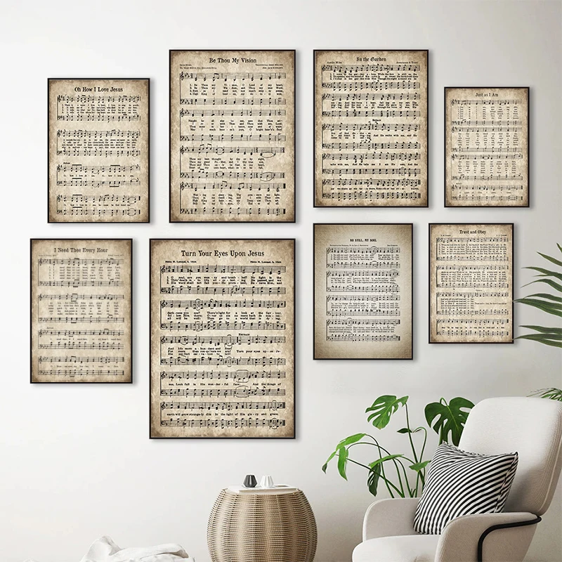 Винтажный постер из листовой музыки я сдаюсь, холст, Художественная печать, античный гимн, Библия, сюжеты, картина с цитатами, картина, христианское художественное украшение