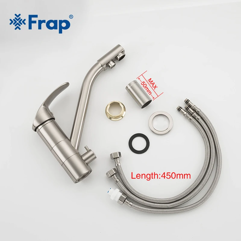 Смеситель для кухни FRAP, с матовым никелем, поворот на 360 градусов, с фильтром, для холодной и горячей воды