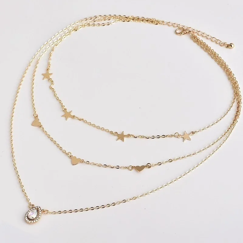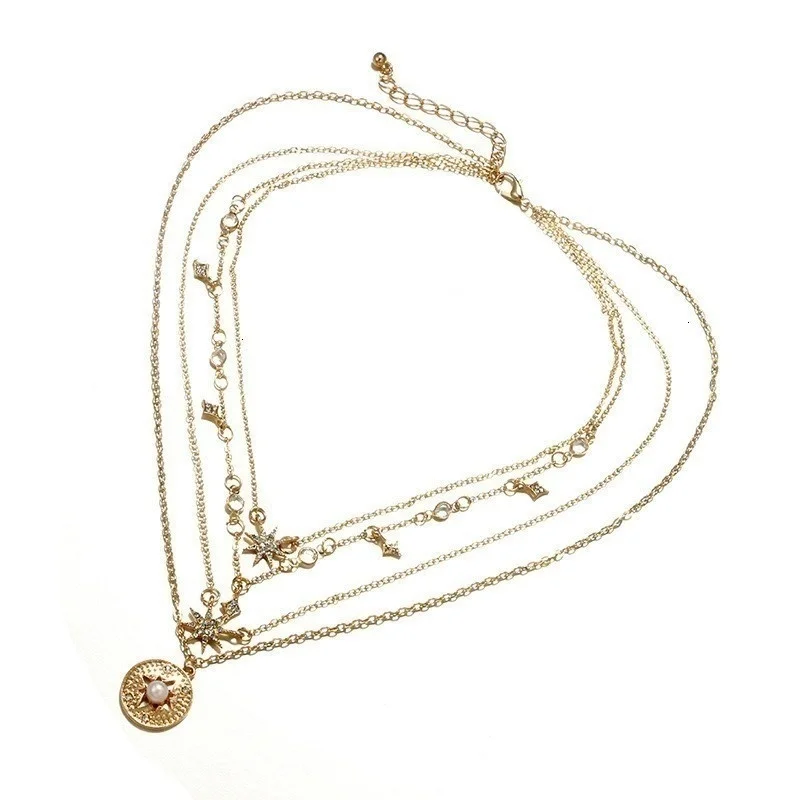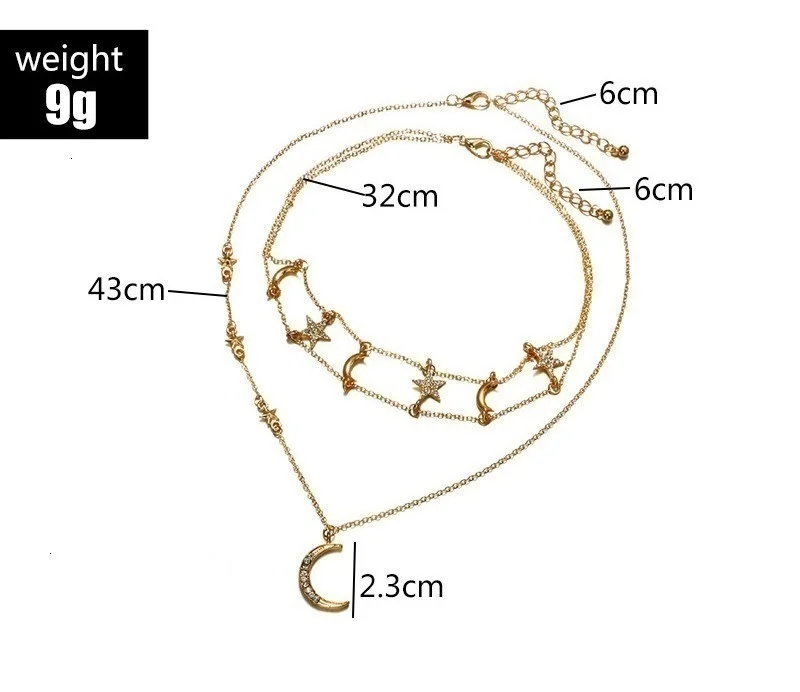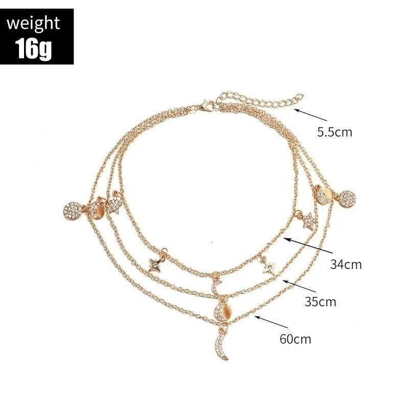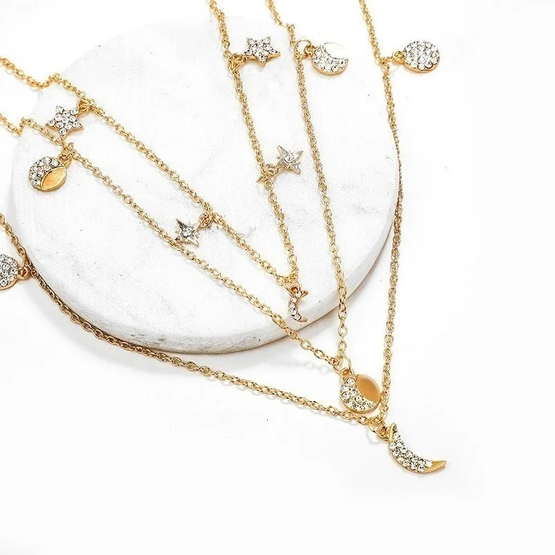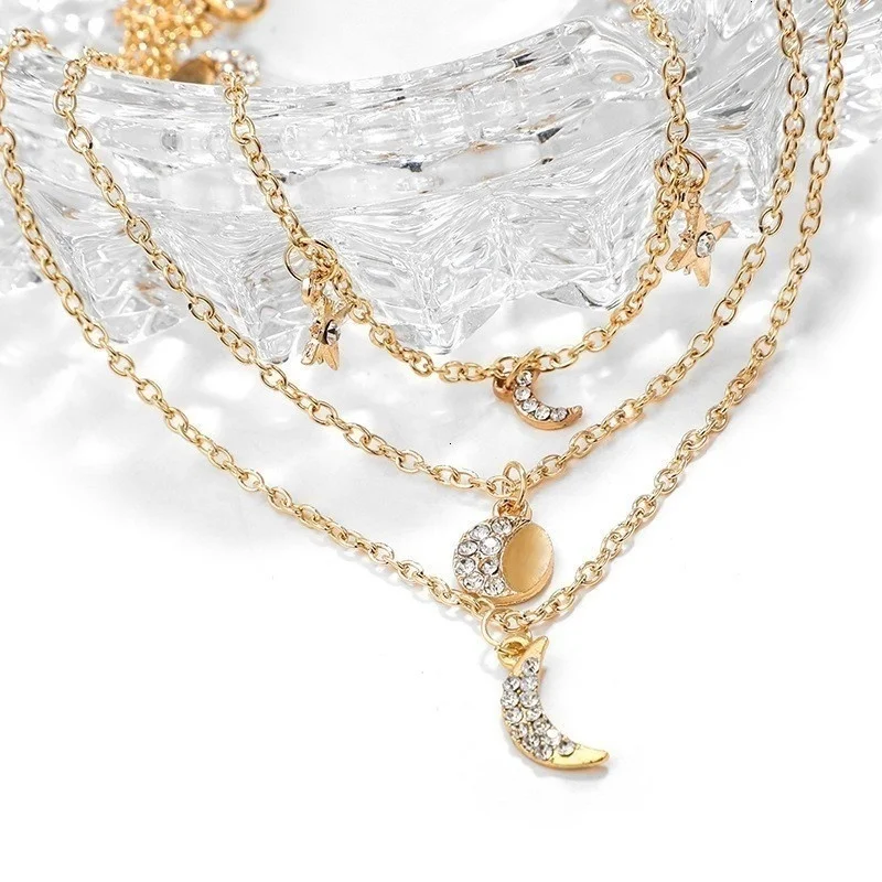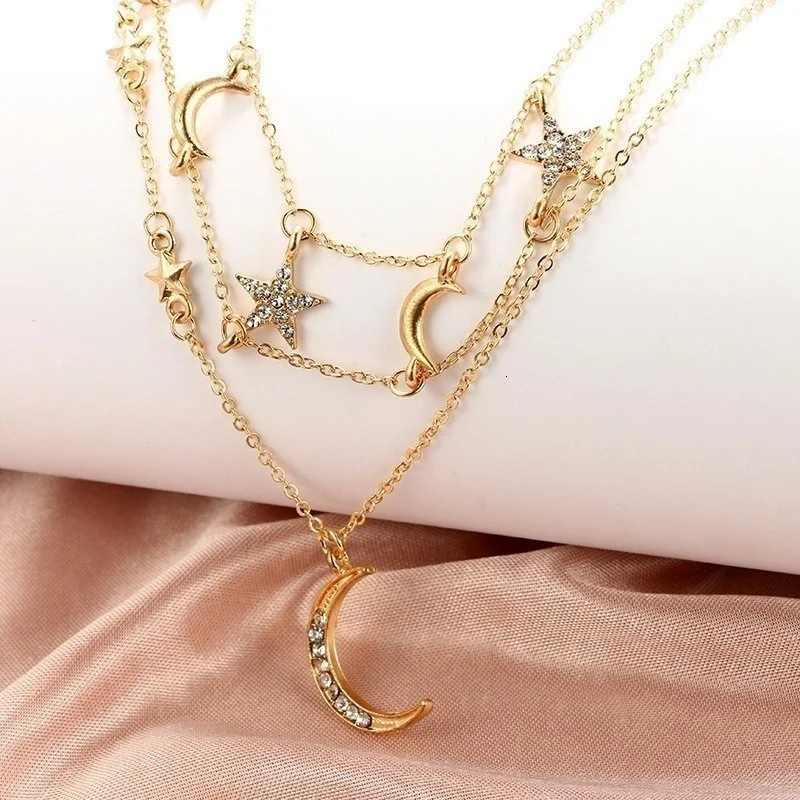Винтажные Многослойные золотые ожерелья для женщин, модные ожерелья и подвески в стиле бохо с Луной, звездой и кристаллами, чокер, ювелирные изделия 2022