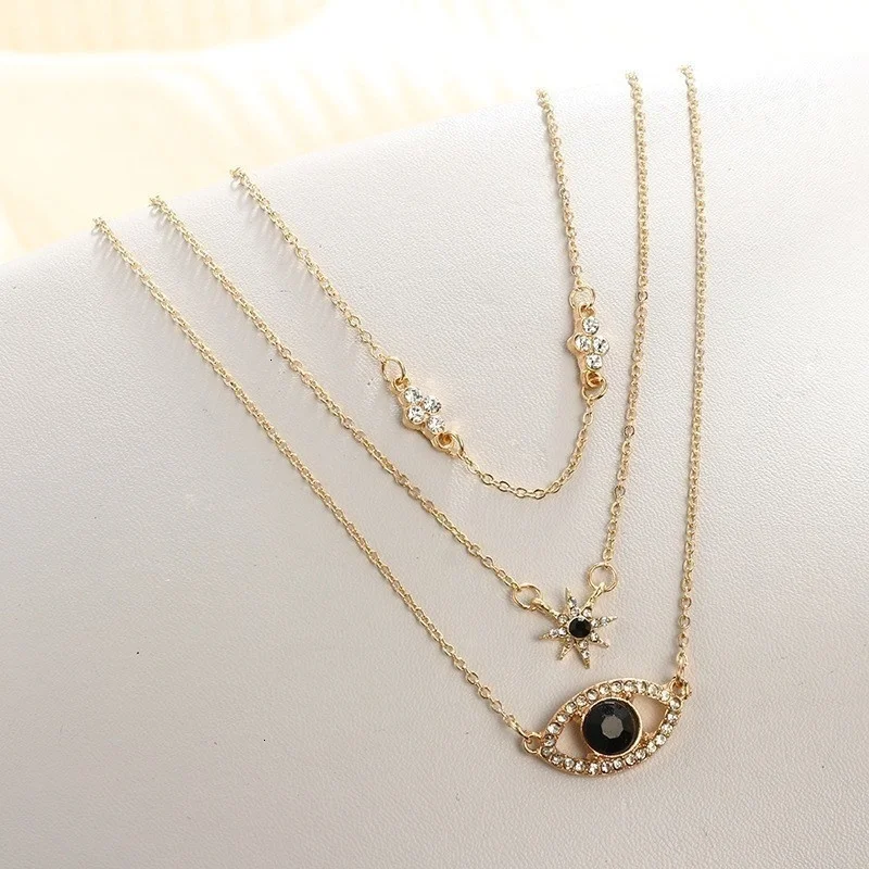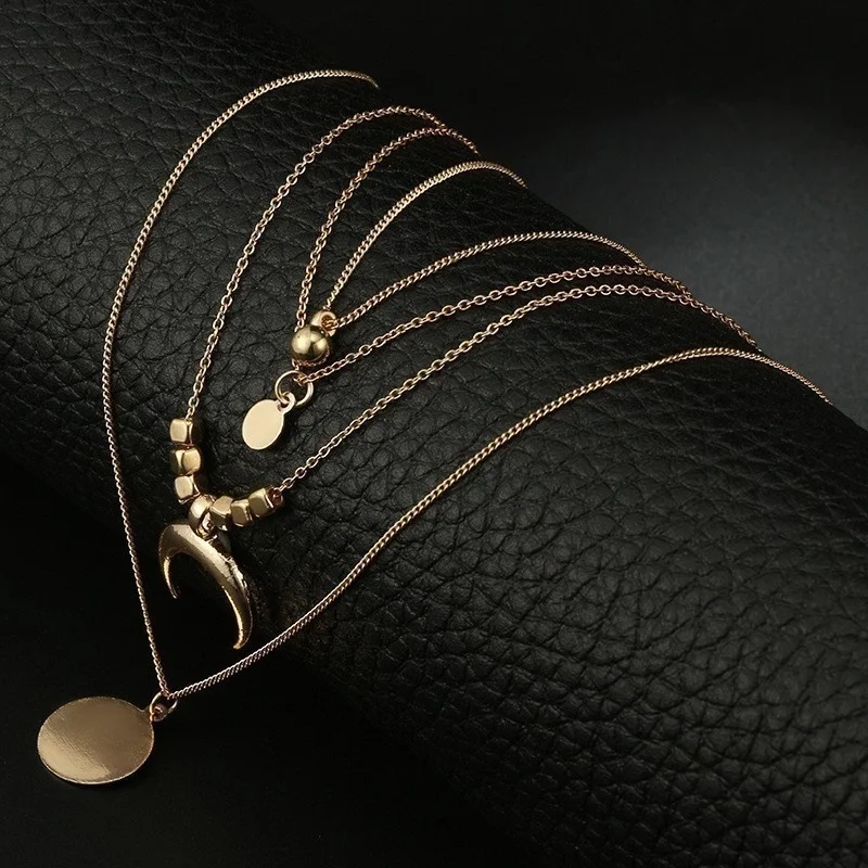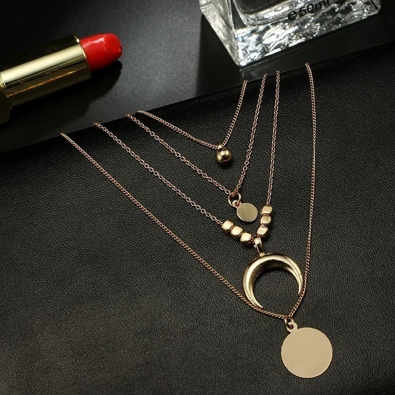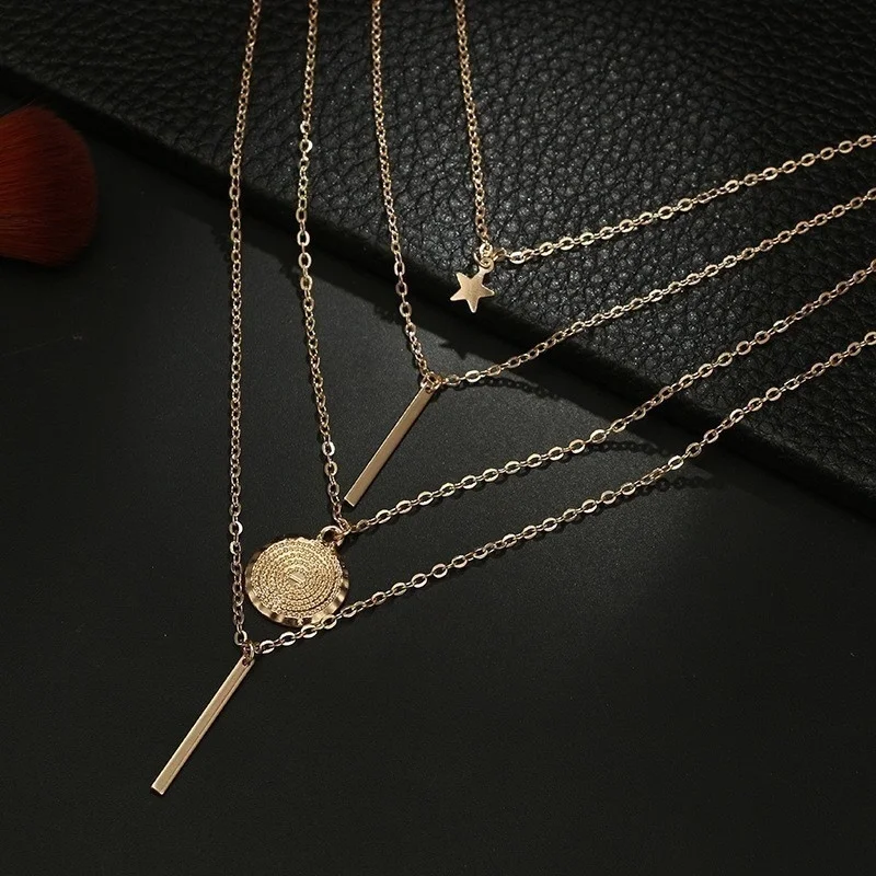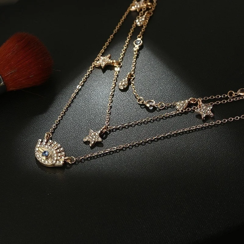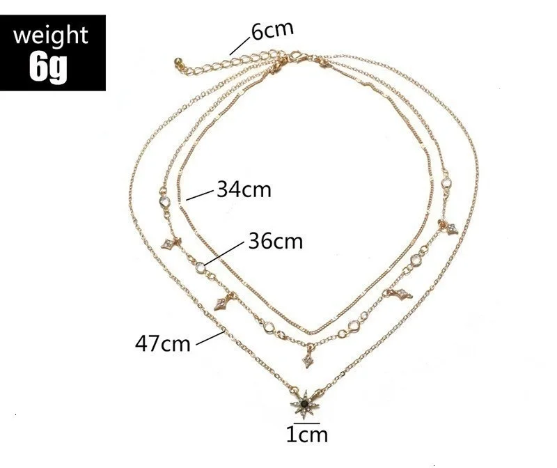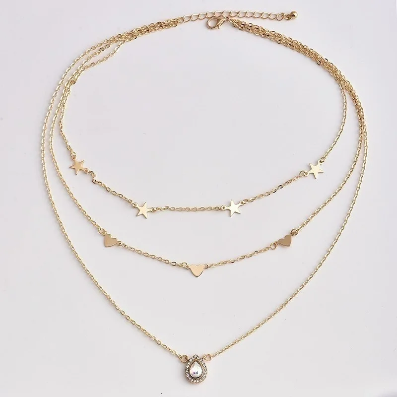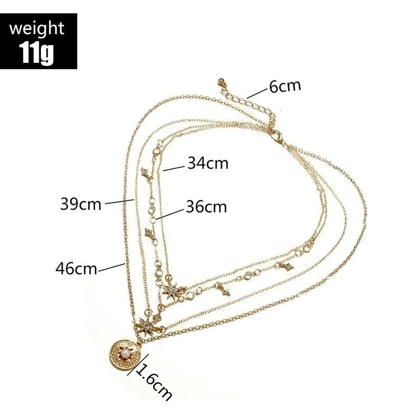 Винтажные Многослойные золотые ожерелья для женщин, модные ожерелья и подвески в стиле бохо с Луной, звездой и кристаллами, чокер, ювелирные изделия 2022