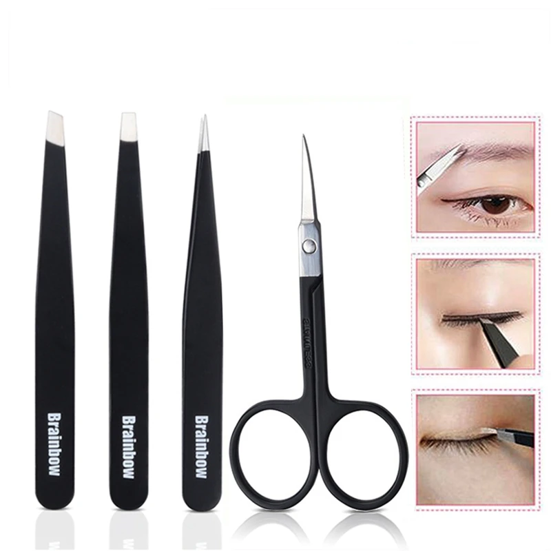 Набор инструментов для макияжа Brainbow 4 шт.упак ., косый плоский пинцет для бровей, кривая, круглая, искусственная бриза для бровей