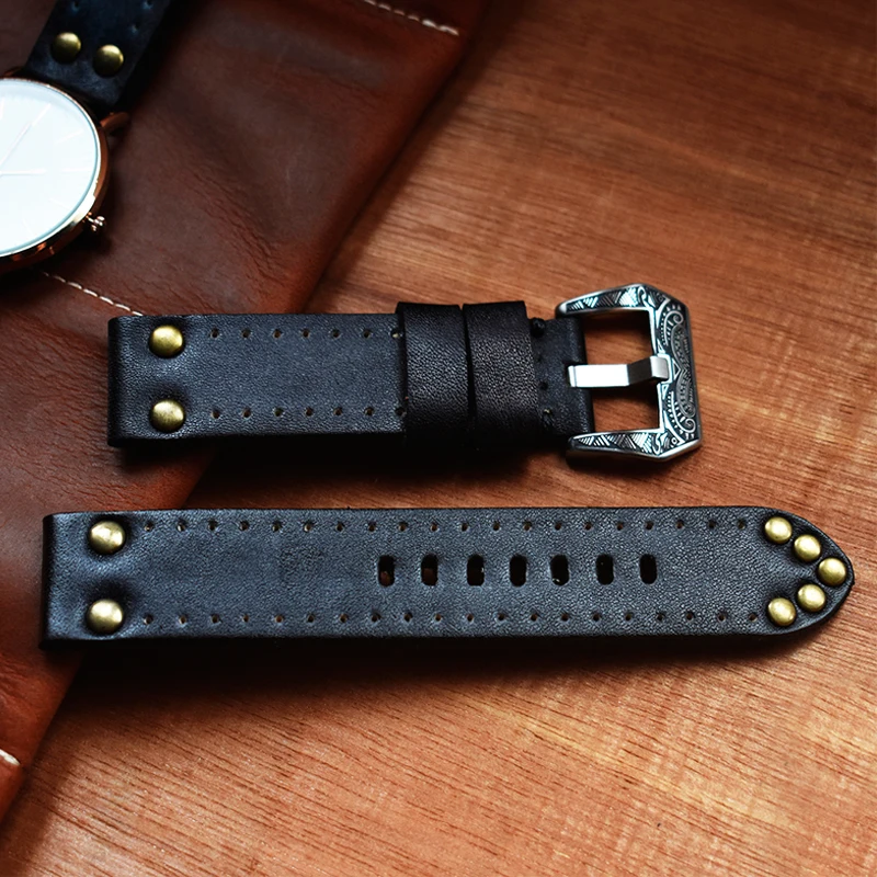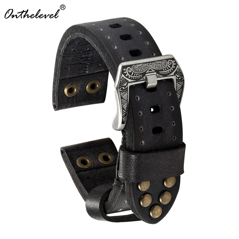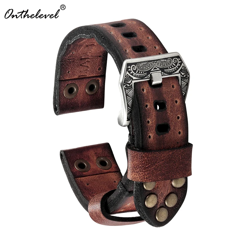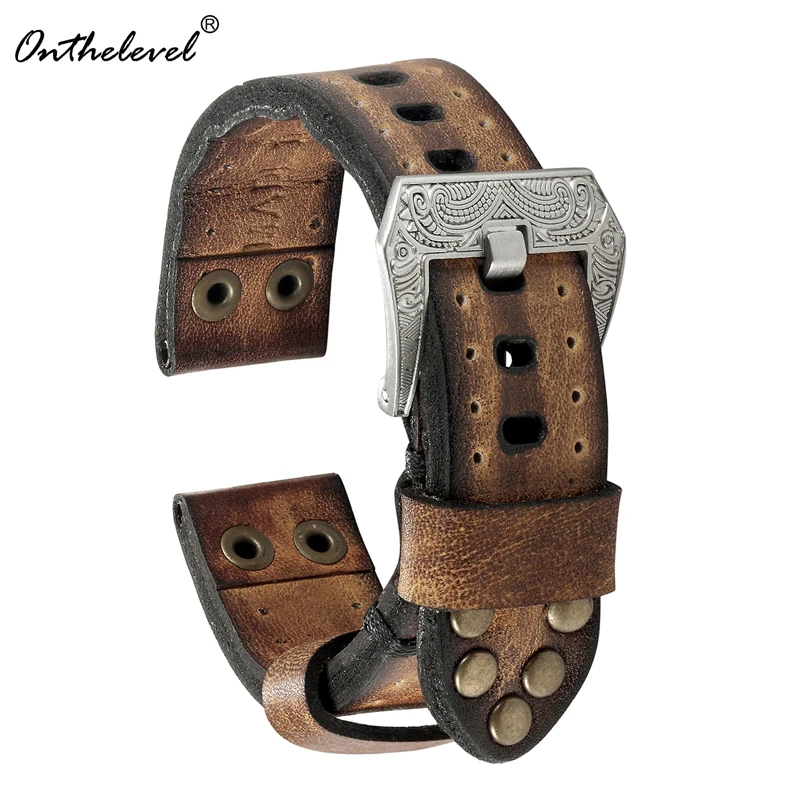 Ремешок для часов onthcelel, классический винтажный мягкий кожаный браслет с заклепками, с резной пряжкой, 18 мм 20 мм 22 мм # C