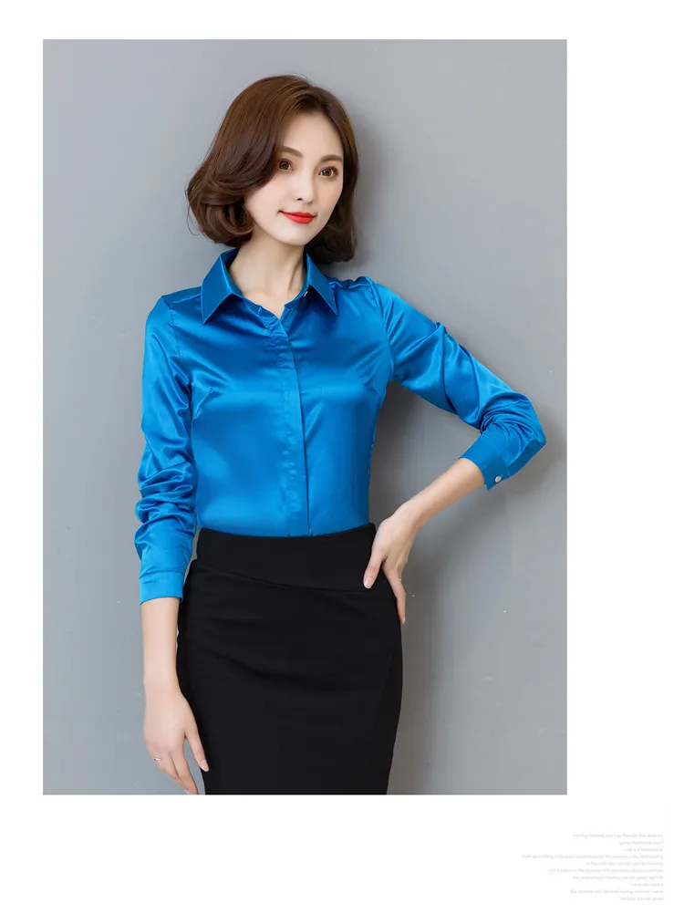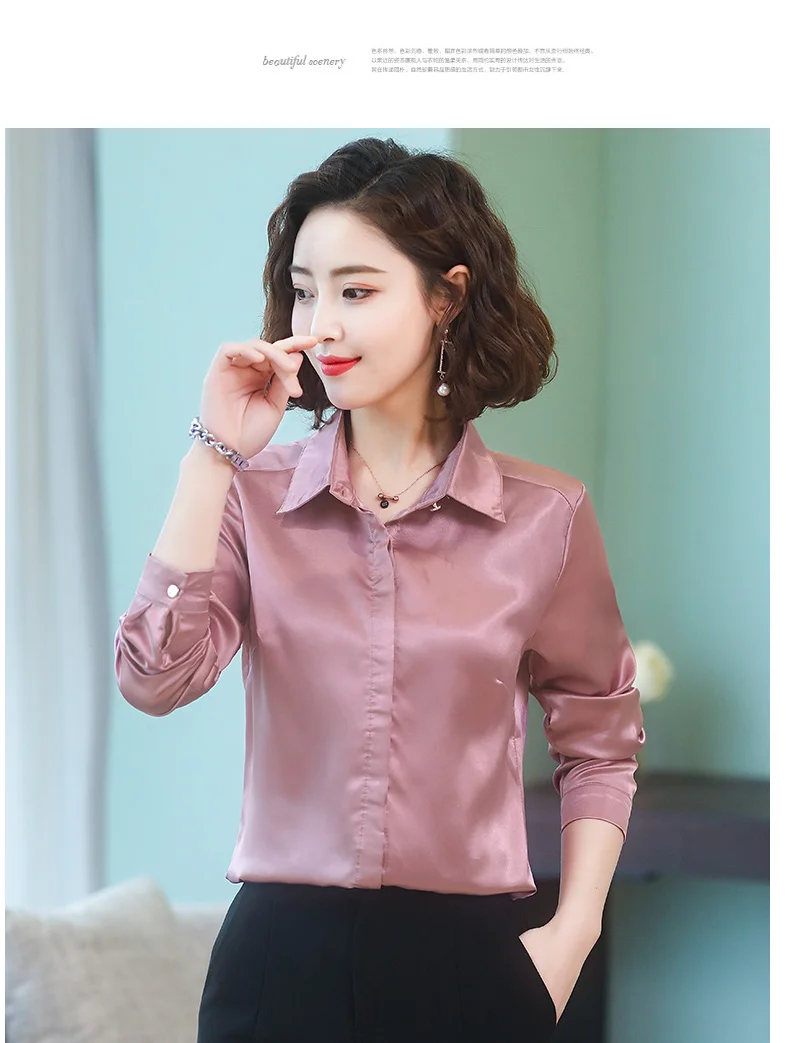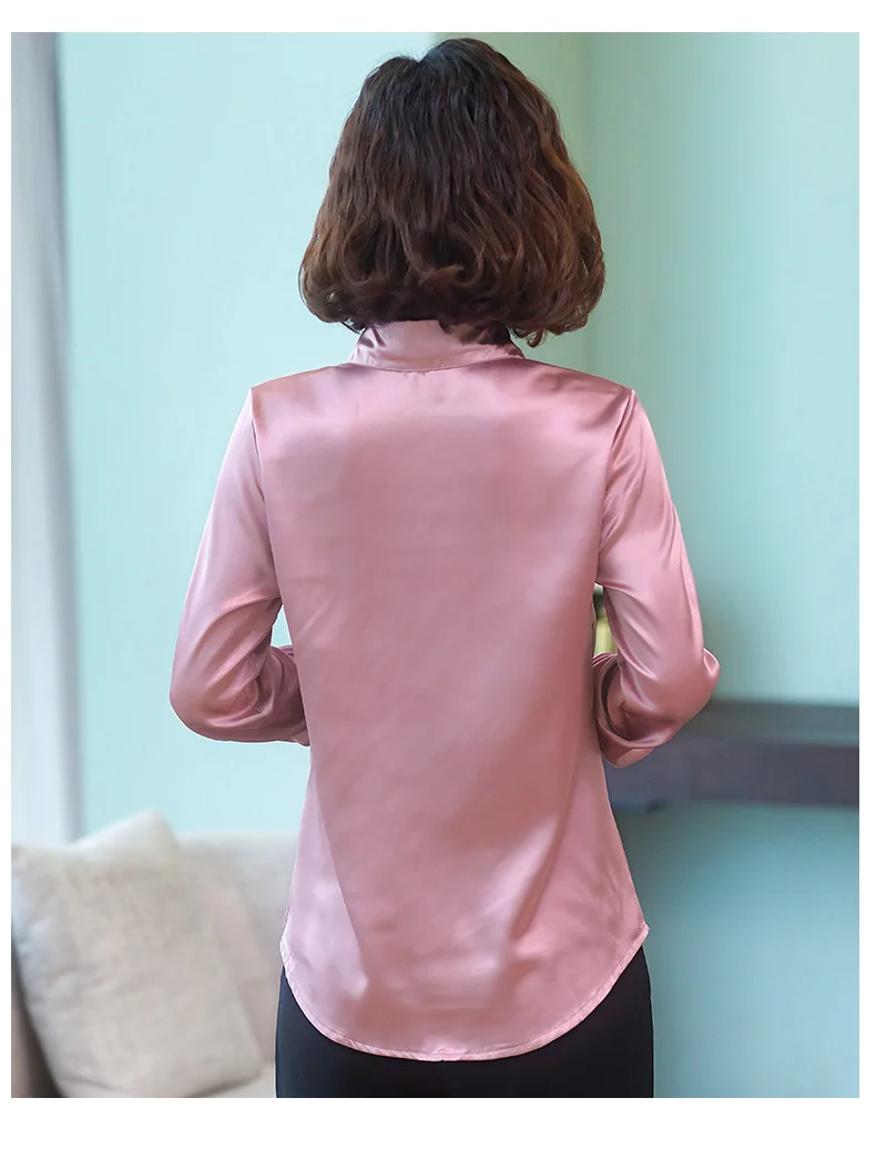 Блузка Женская атласная с отложным воротником и длинным рукавом
