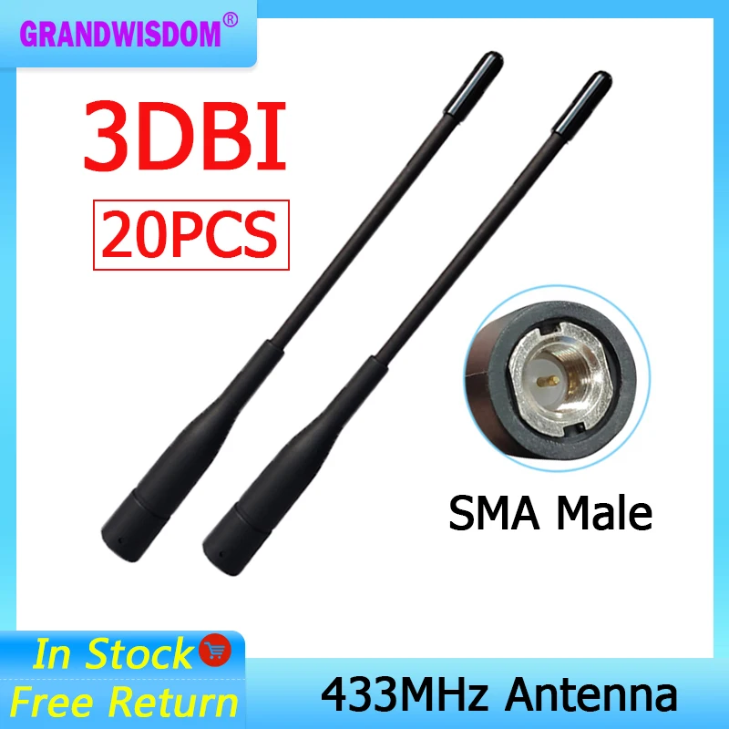 GRANDWISDOM 20шт 433 МГц антенна 3dbi sma male lora antene pbx iot модуль lorawan приемник сигнала антенны с высоким коэффициентом усиления