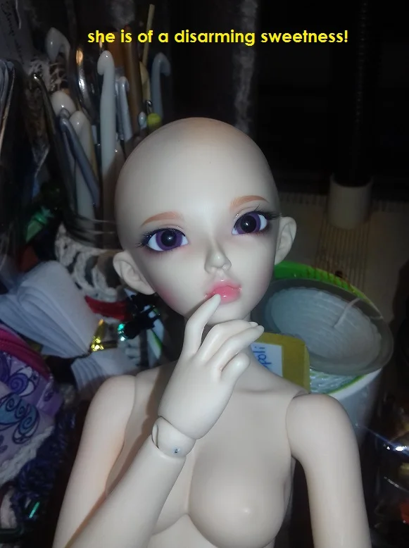 Она красивая. Она пришла в коробку, которая была красивой. Ее суставы немного свободные, но это что-то легко фиксируется. Я бы хотел, чтобы был способ выбрать, какие глаза вы получили, но я думаю, что я мог бы отправить продавцу по электронной почте. Затем, что она довольно идеальна. Доставка в США занимает около 4 недель.