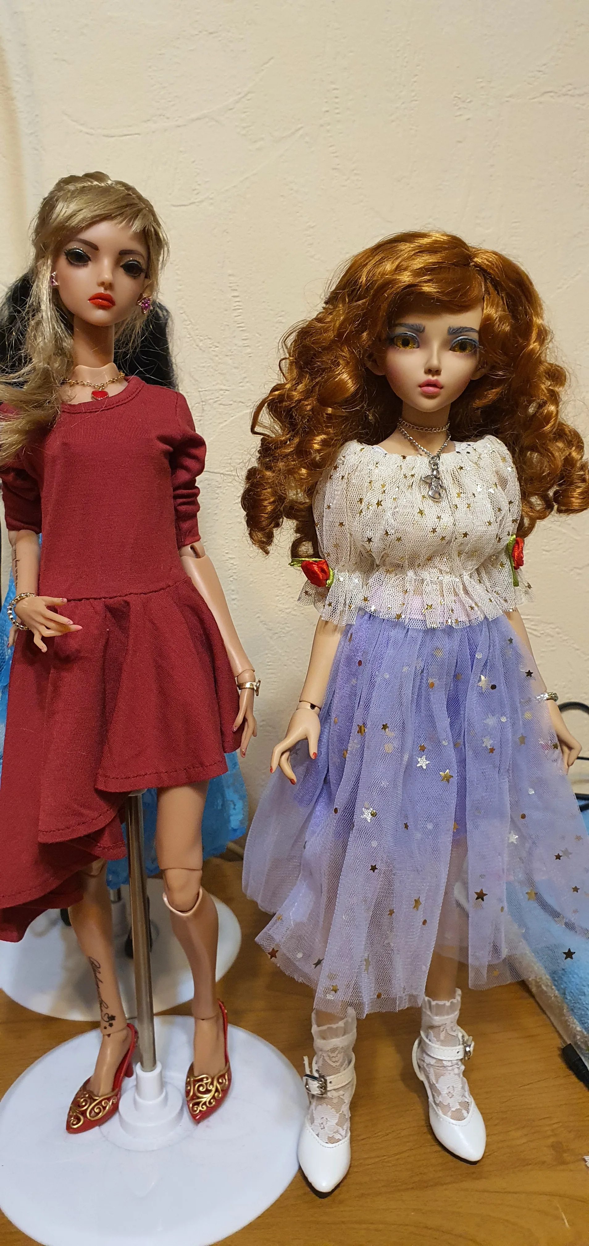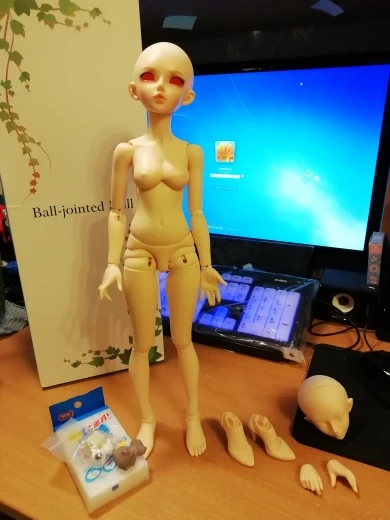 Очень красивая кукла, но слишком сильная натяжка, из-за чего плоховато держит позы. Буду перетягивать. Как и просила, продавец положил голубые глаза. Жестовые руки и каблучные стопы в комплекте. Дракончик на магните и меламиновая губка в подарок. Все хорошо упаковано, дошло в целости и сохранности.