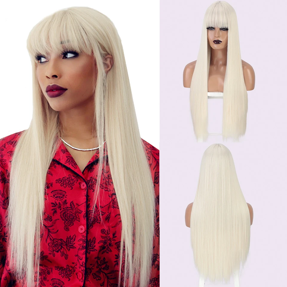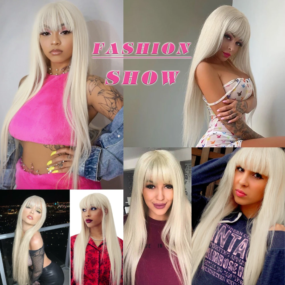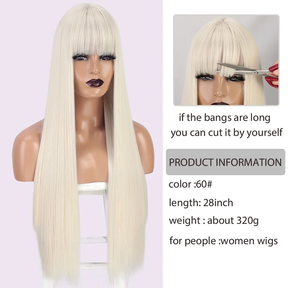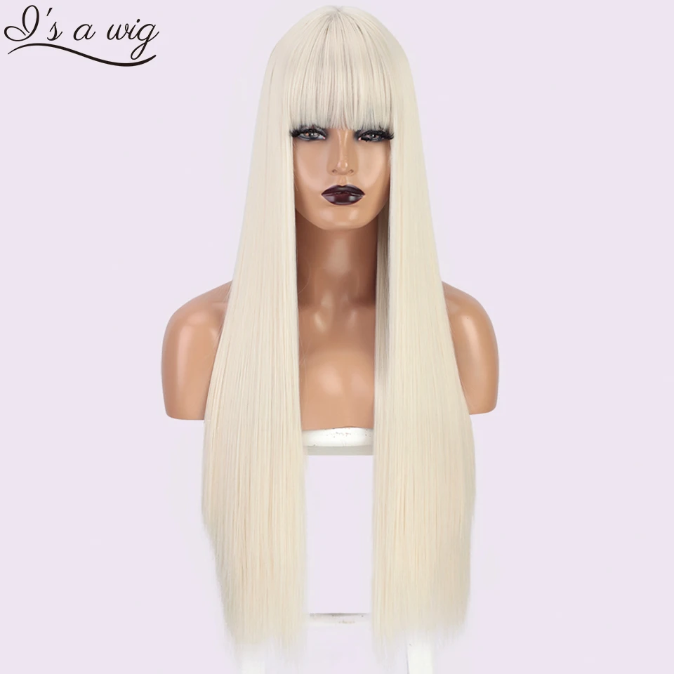 Длинный прямой парик I's a wig, 60 белых синтетических париков с челкой для женщин, натуральные черные, коричневые, красные, розовые волосы для ежедневного использования на вечеринках