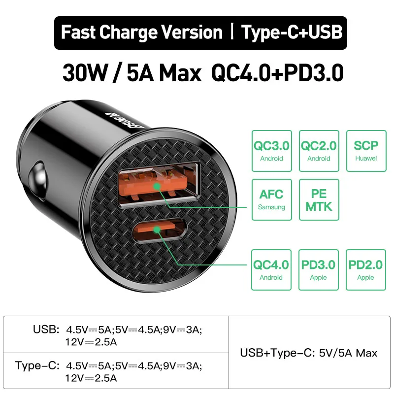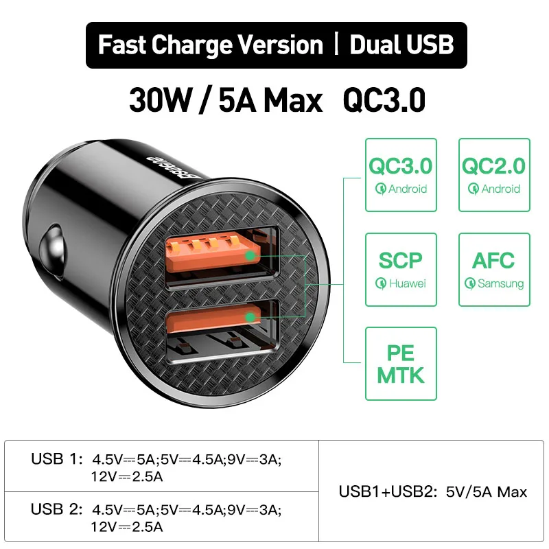 Автомобильное зарядное устройство Baseus для iPhone, Samsung, телефона, планшета, GPS, 3.1A, быстрая зарядка, зарядное устройство, Мини, двойной USB, автомобильное зарядное устройство, адаптер