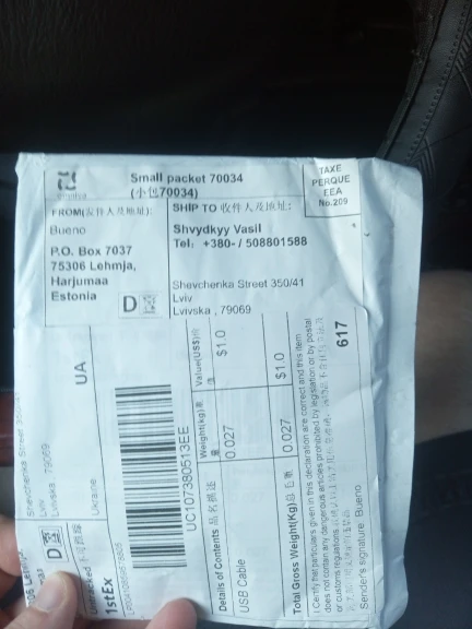 Страна: UA Color: For Micro USB Plug Length: 100cm Ships From: CN Доставка: Seller's Shipping Method 17.11.2020