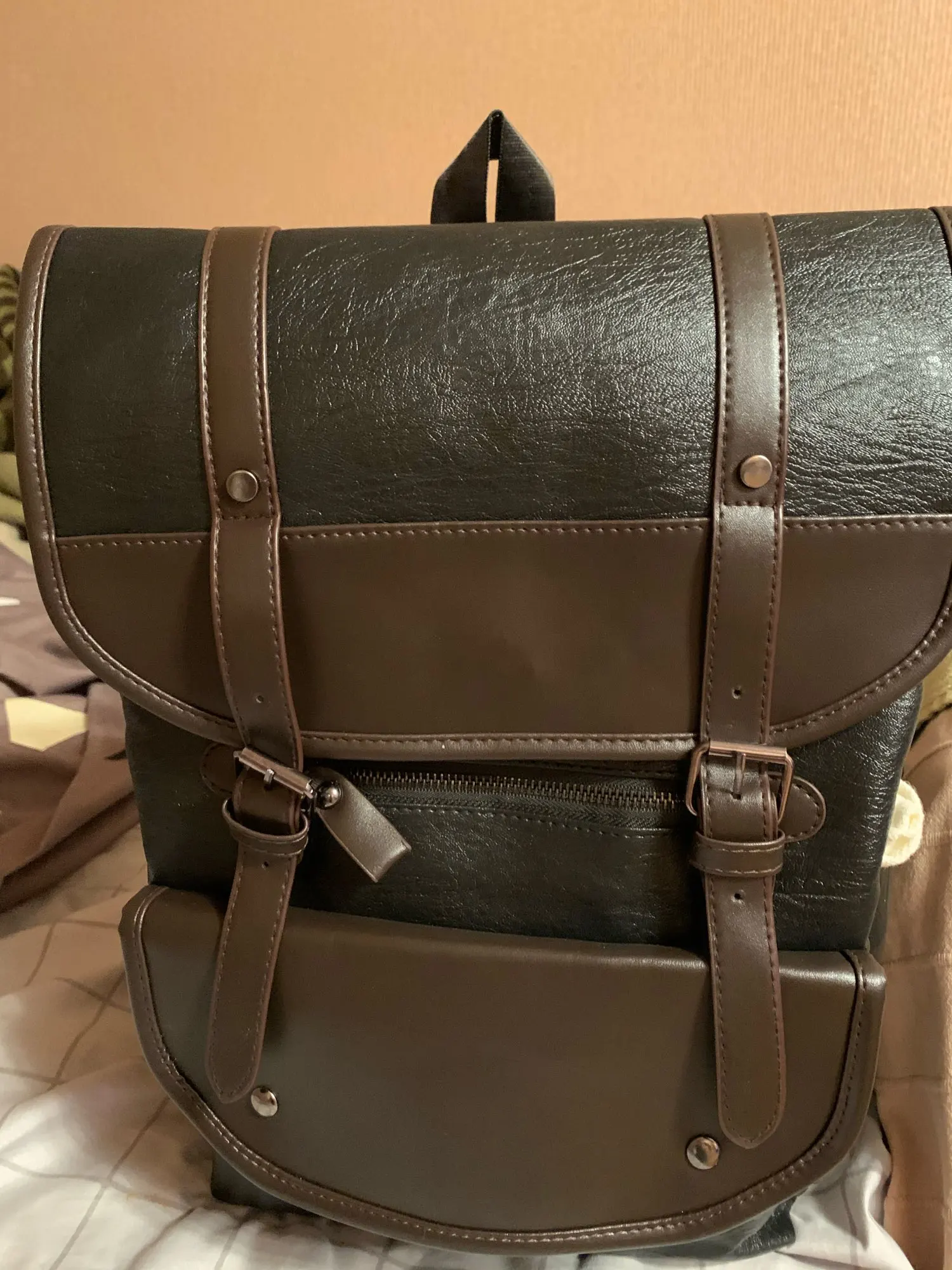 Отлично! Хороший рюкзак, запаха нет, выглядит достойно, внутри три кармашка : два маленьких, один на спине побольше. Очень легкий рюкзачок. Езжу на велосипеде, на работу - очень удобно, довольно вместительный. Брала специально на зиму, так как спинка из кожзама - летом будет спина моментально потеть, а зимой хорошо. Со скидкой получилось очень выгодно. Спасибо!