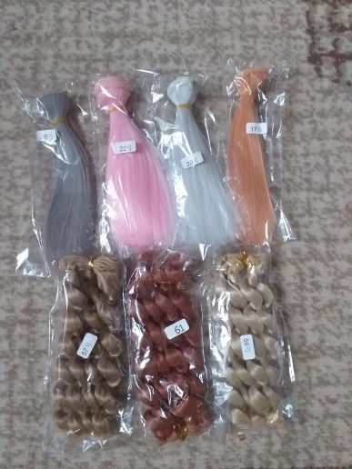 Цвет не такой, как на картинке, более серый. Я заказывала 57, но он больше похож на 58 на фото. По качеству волосы сначала показались жестковаты, но после выпрямления утюжком стали более гладкие и мягче. Кончики всё равно остались жёсткие. Мне пришлось их выпрямить, потому что такие же красивые локоны при перепрошивке куклы всё равно не получатся, скорее будет гнездо на голове, а не локоны.