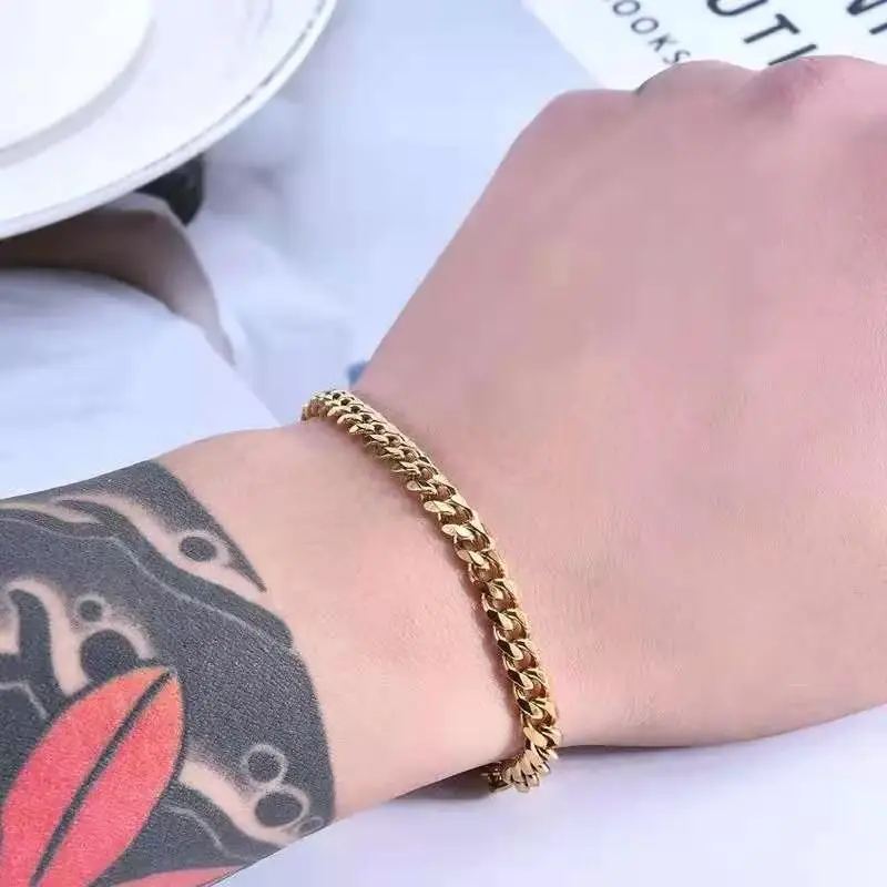 Браслет унисекс из нержавеющей стали, с золотым и серебряным покрытием, толстый, с кубинским звеном